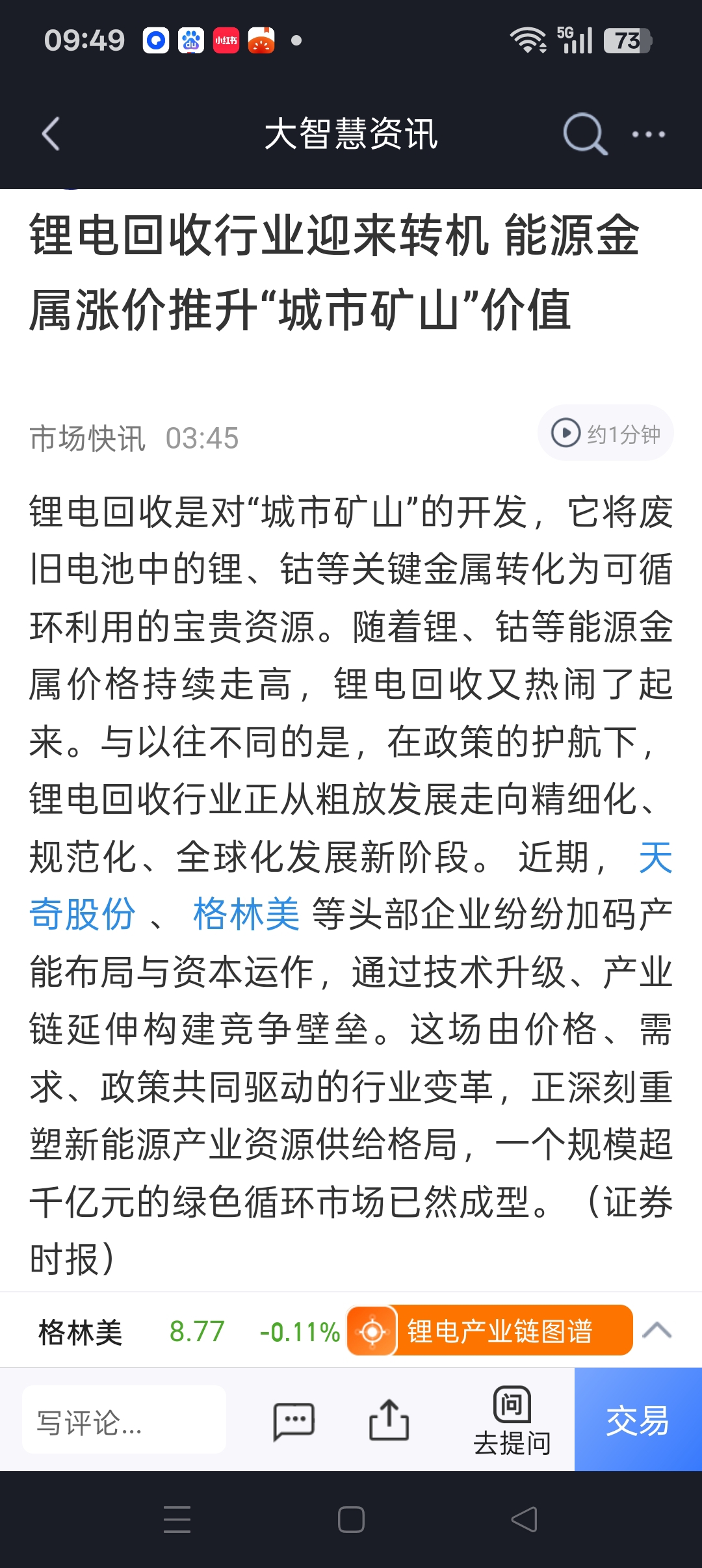 $格林美(SZ002340)$