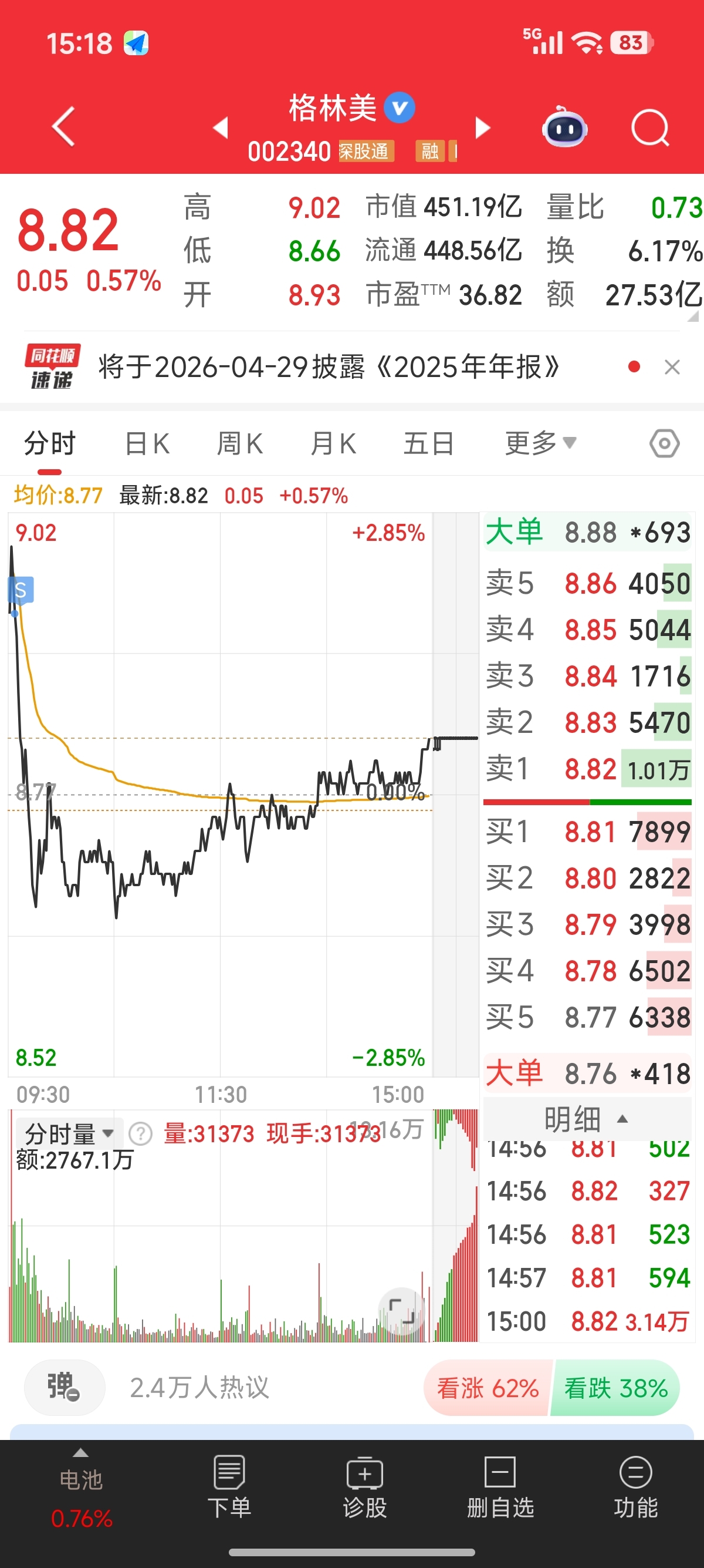 $格林美(SZ002340)$ 我又跑了!!没接回来感觉有点不踏实!!!