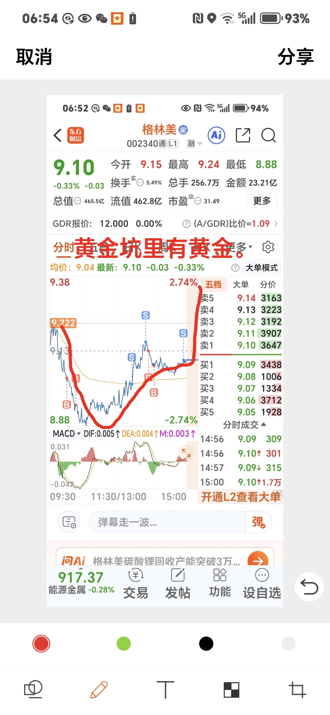 $格林美(SZ002340)$ 今日必反弹上涨!持股别抛,主力正在打压吸筹呢,昨日的黄金坑。骗散户撒了好多筹码给了庄家!