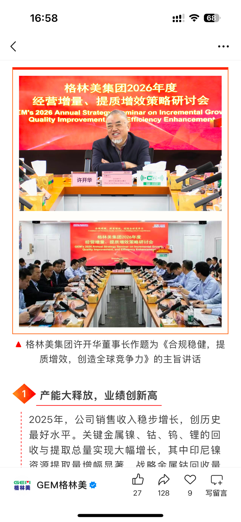 $格林美(SZ002340)$ 华哥在加油冲
