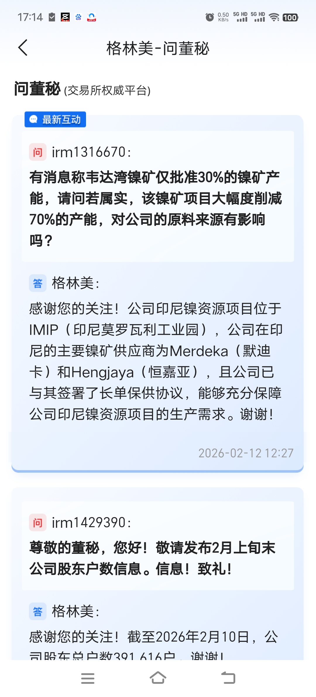$格林美(SZ002340)$ 镍矿无忧,谁再去问一下董秘今年钨产量,今年的钨价涨上天了,咋没人提呢,去看一下翔鹭钨业都翻3倍了