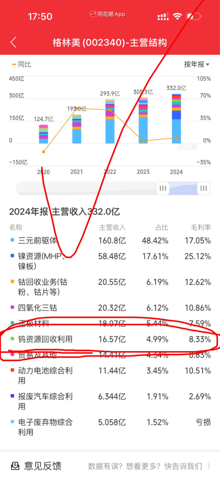 钨资源2024年是16.57亿元$格林美(SZ002340)$