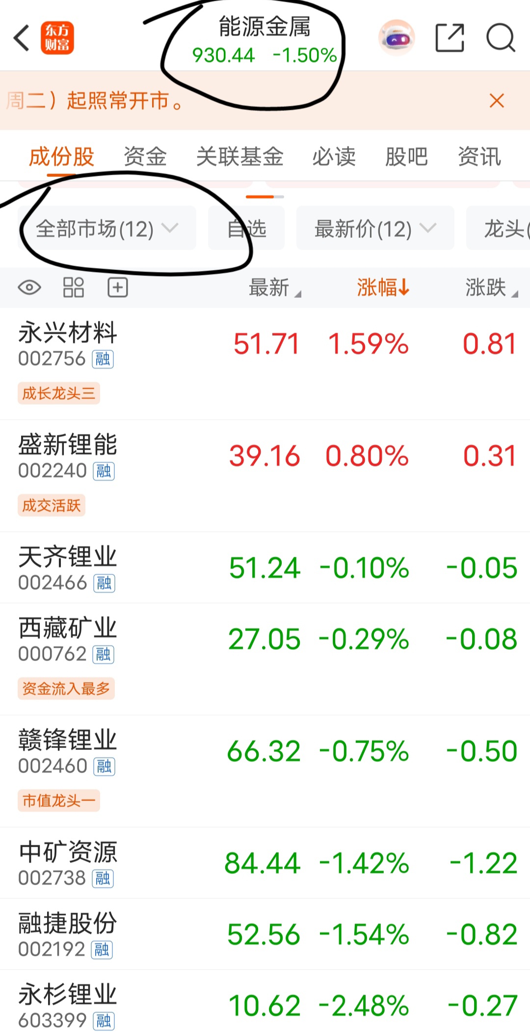 $格林美(SZ002340)$ 昨天还是能源金属板块,一共13家,现在剩12家了