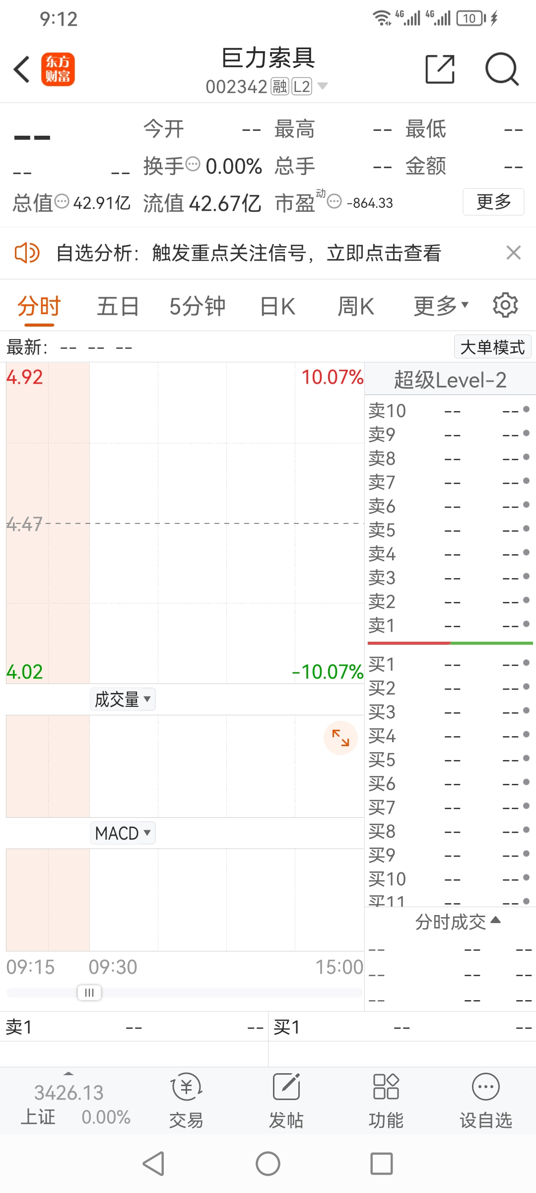 $巨力索具(SZ002342)$ 军哥龙头,集合竞价 巨力索具,2342。
