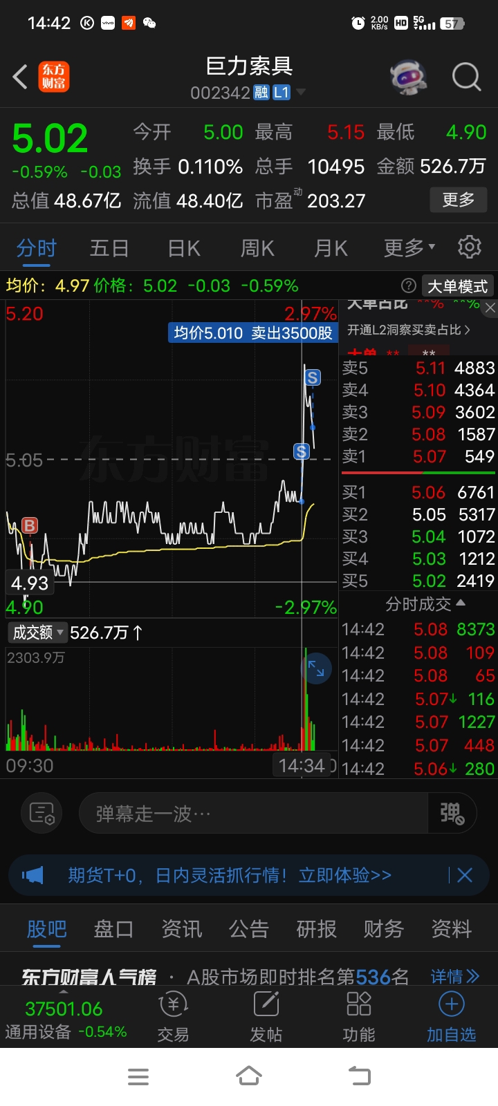 $巨力索具(SZ002342)$ 就盯着我35手是不是