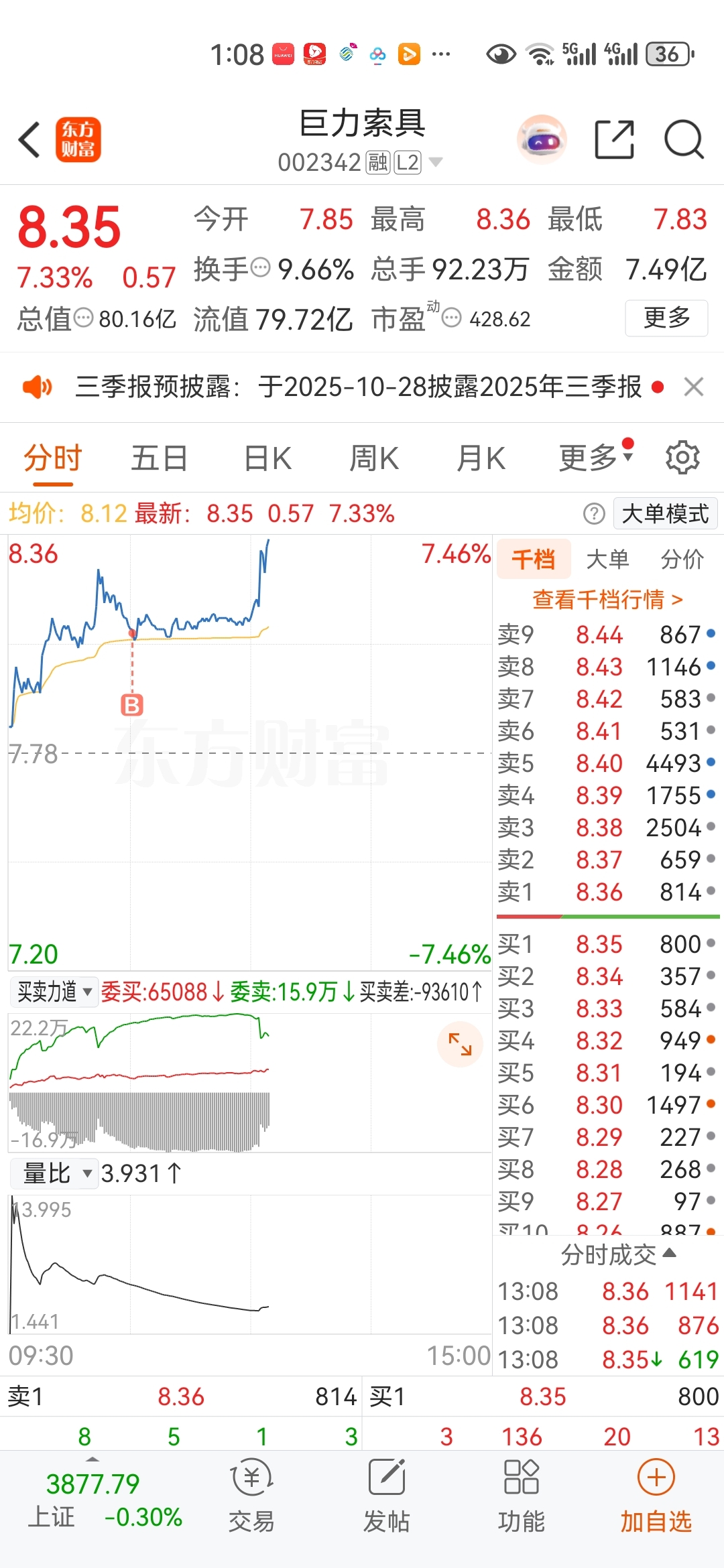 $巨力索具(SZ002342)$ 能不能封上去?加油!