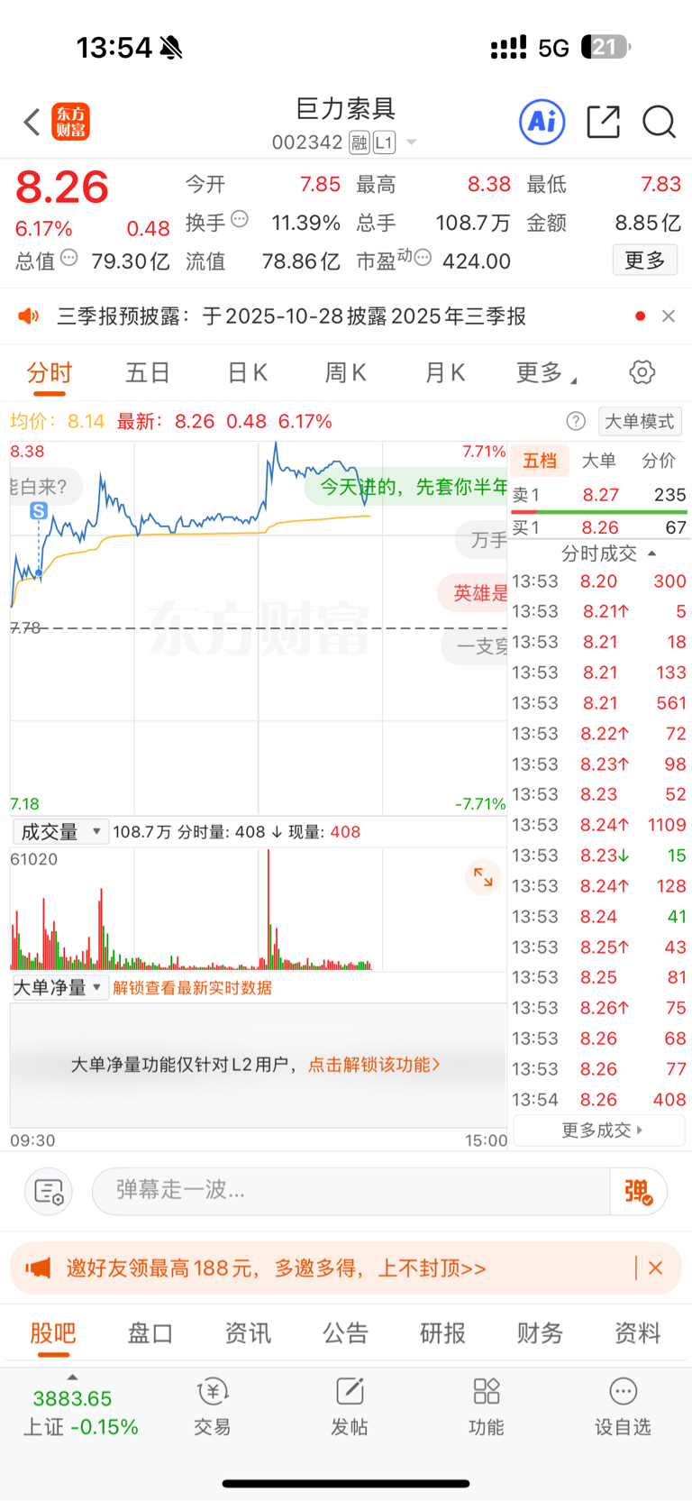 温馨提示: 1.根据《证券法》规定,禁止编造、传播虚假信息或者误导性信息,扰乱证券市场;2.用户在本社区发表的所有资料、言论等仅代表个人观点,与本网站立场无关,不对您构成任何投资建议。用户应基于自己的独立判断,自行决定证券投资并承担相应风险。《东方财富社区管理规定》