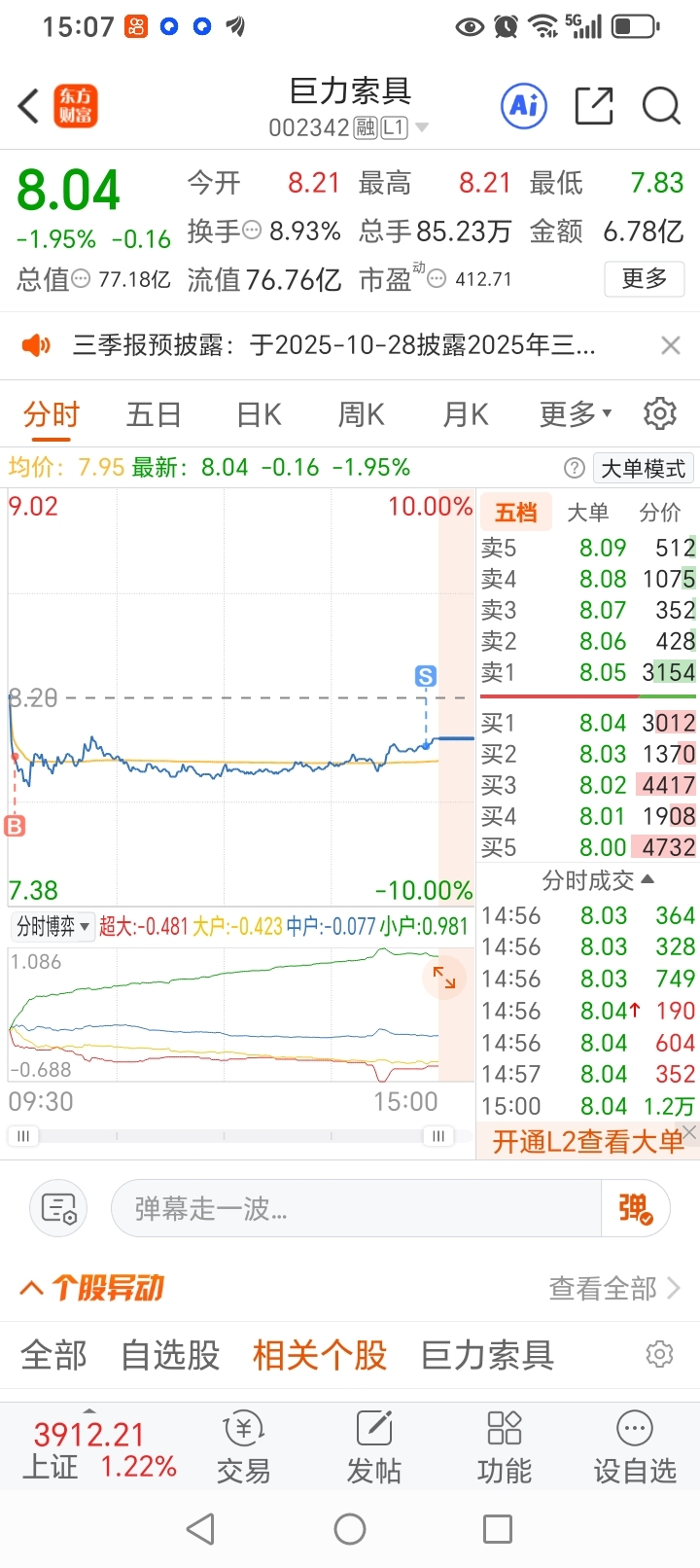 $巨力索具(SZ002342)$ 本想T一把的,老庄不给机会啊,明天低开再来