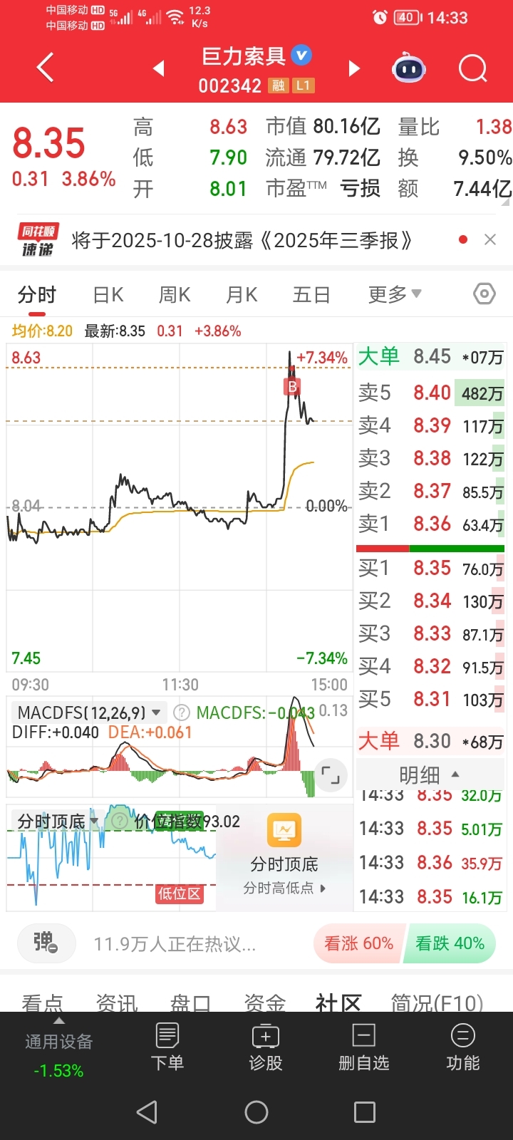 $巨力索具(SZ002342)$ 。。恶心想吐