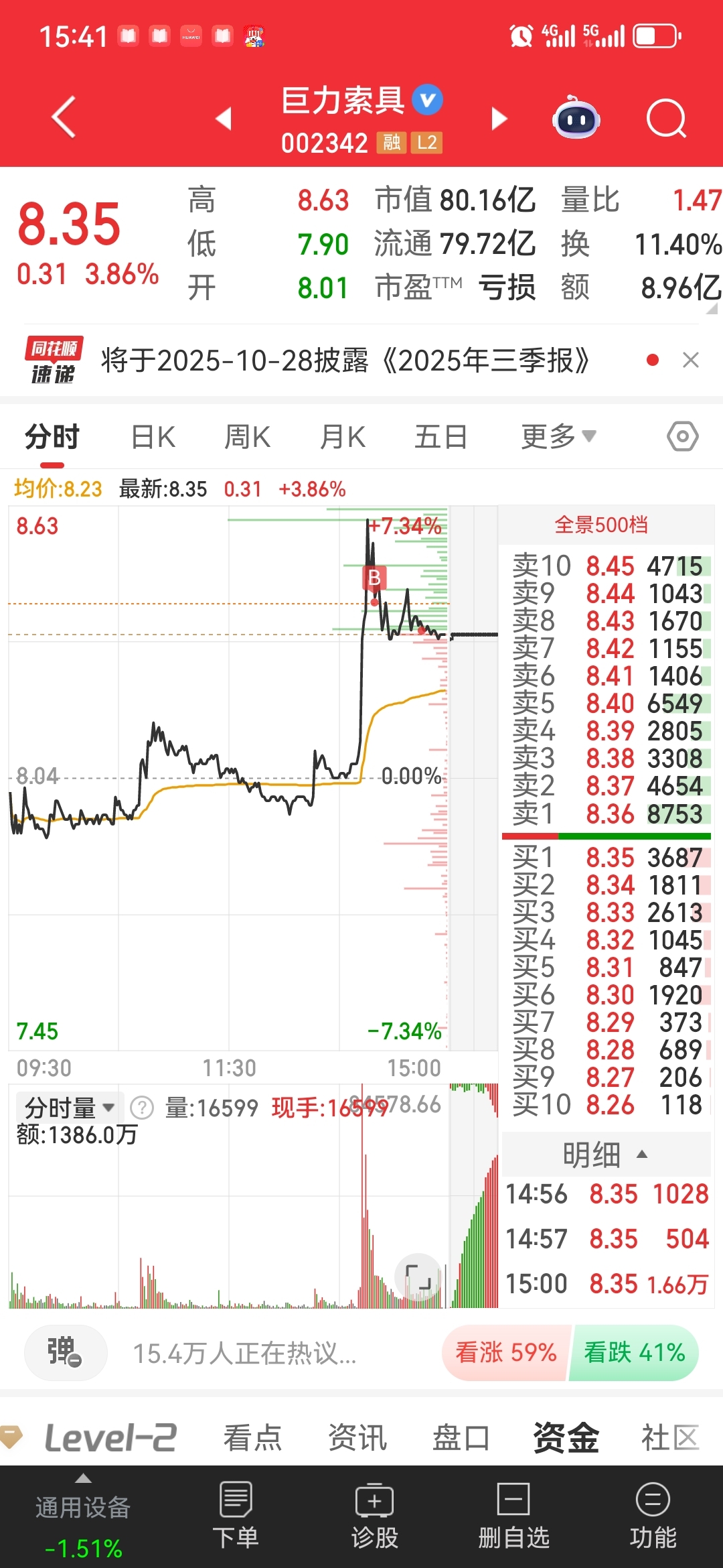 $巨力索具(SZ002342)$ 这个今天有点追高了,不知道会不会套住