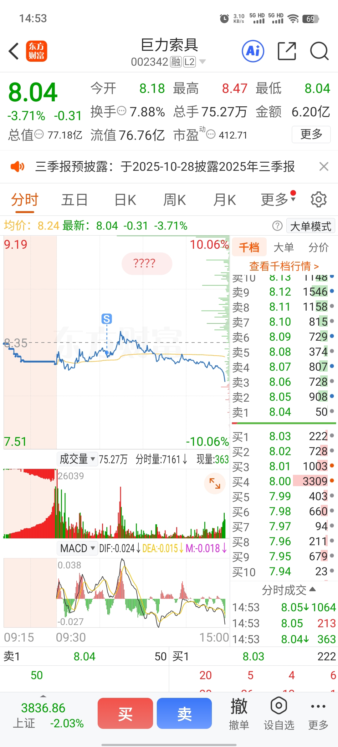 $巨力索具(SZ002342)$ 要出去办事没空看,就跑了,没想到跑的真正确