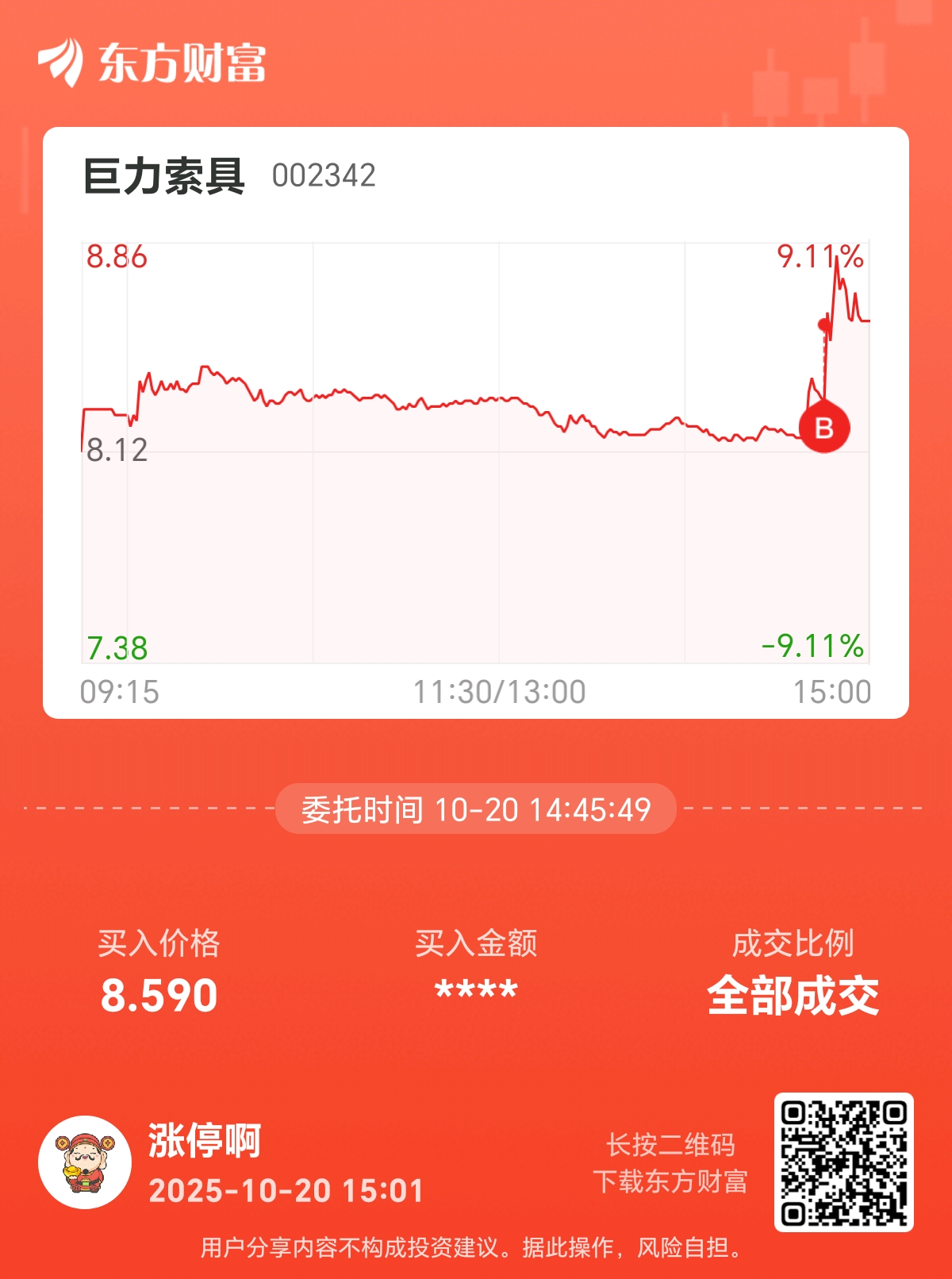 $巨力索具(SZ002342)$ 明天红了我就卖