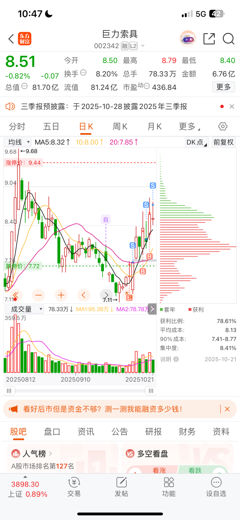 $巨力索具(SZ002342)$ 这次赚钱了,回血了