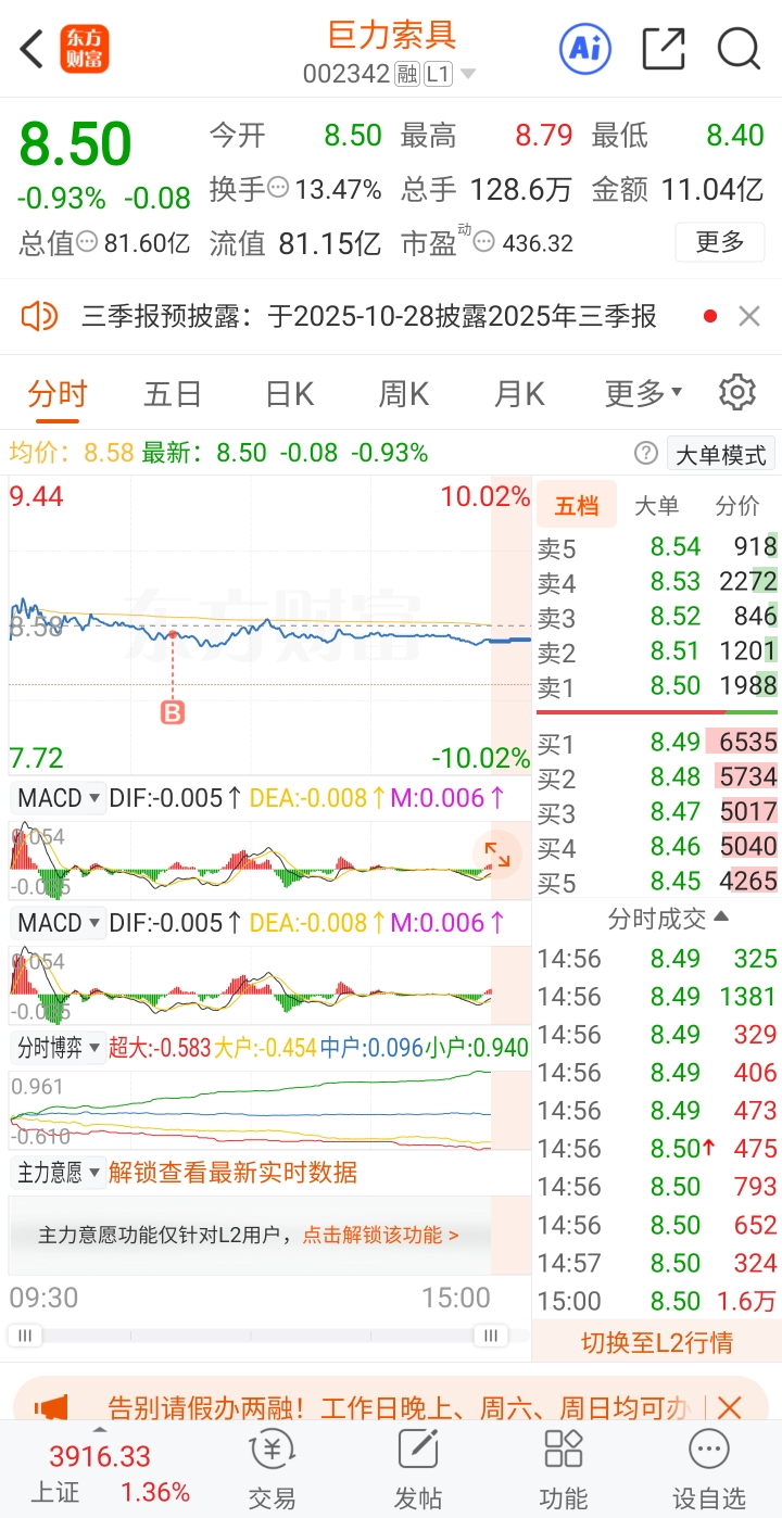 $巨力索具(SZ002342)$ 兄弟们,我又加仓了,坐等明天变盘啊,能不能起飞就看明天了。