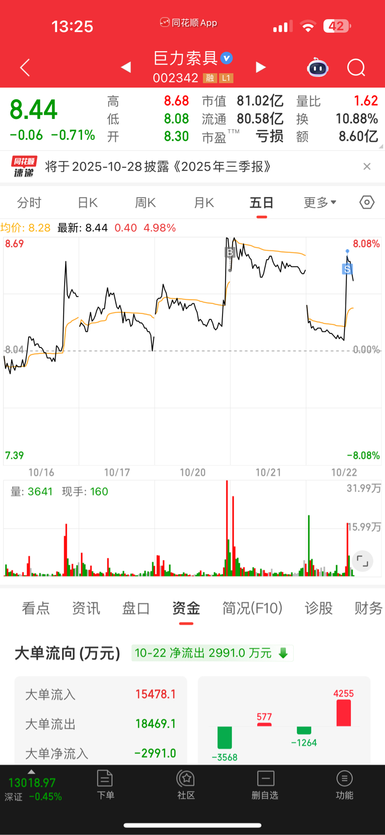 $巨力索具(SZ002342)$ 下次再来吧,没量第二波就卖了,