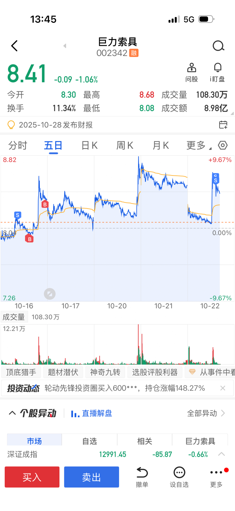 $巨力索具(SZ002342)$ 我这T王格局几天没T你,是我的错