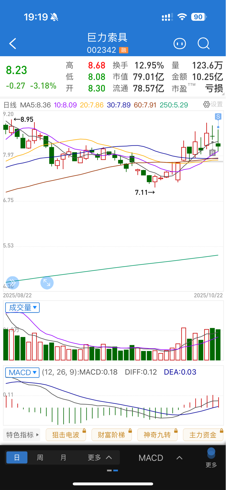 $巨力索具(SZ002342)$ 一日游,差点亏个大的。
