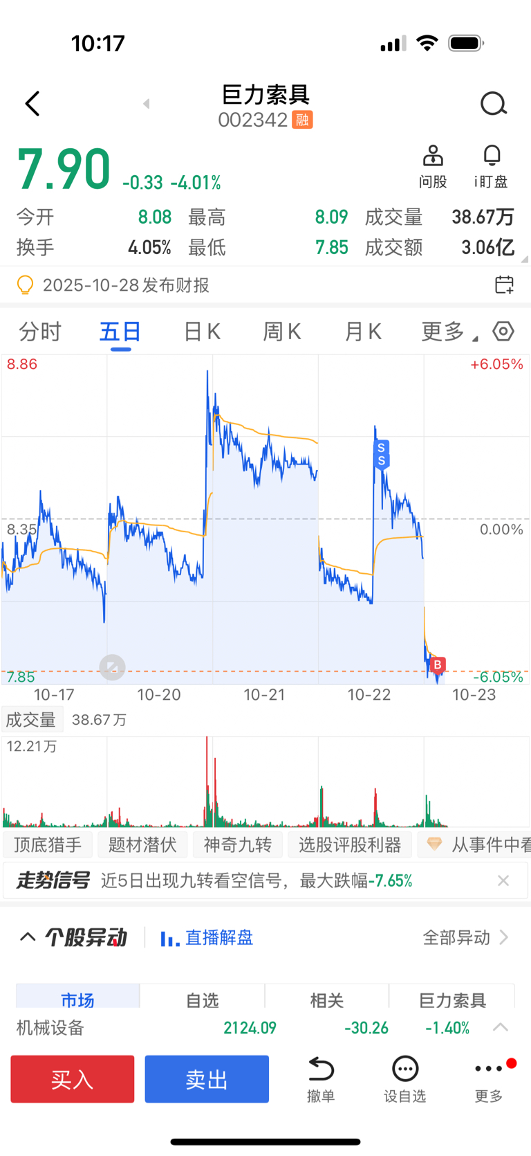 $巨力索具(SZ002342)$ 我来给兄弟们打打气助助力