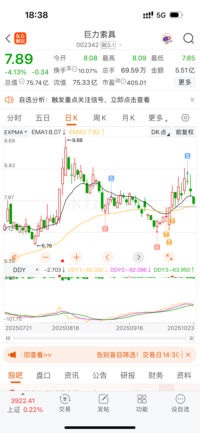 $巨力索具(SZ002342)$ 买在无人问津时,这只股票我懂,大家不用幻想了,到7.5左右会企稳,可以高抛低吸一下但别报有涨停龙头的幻想