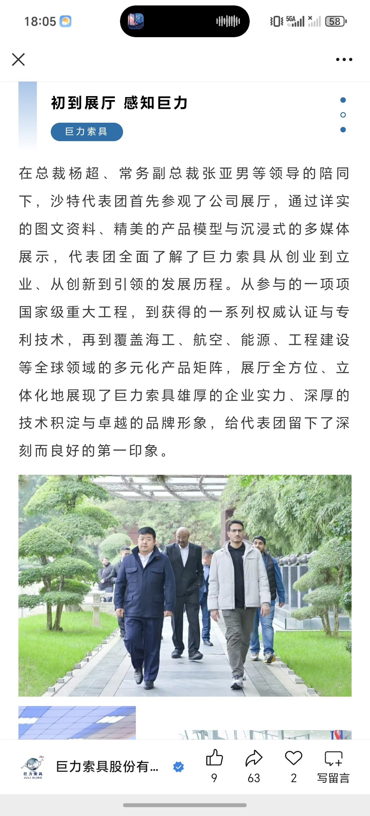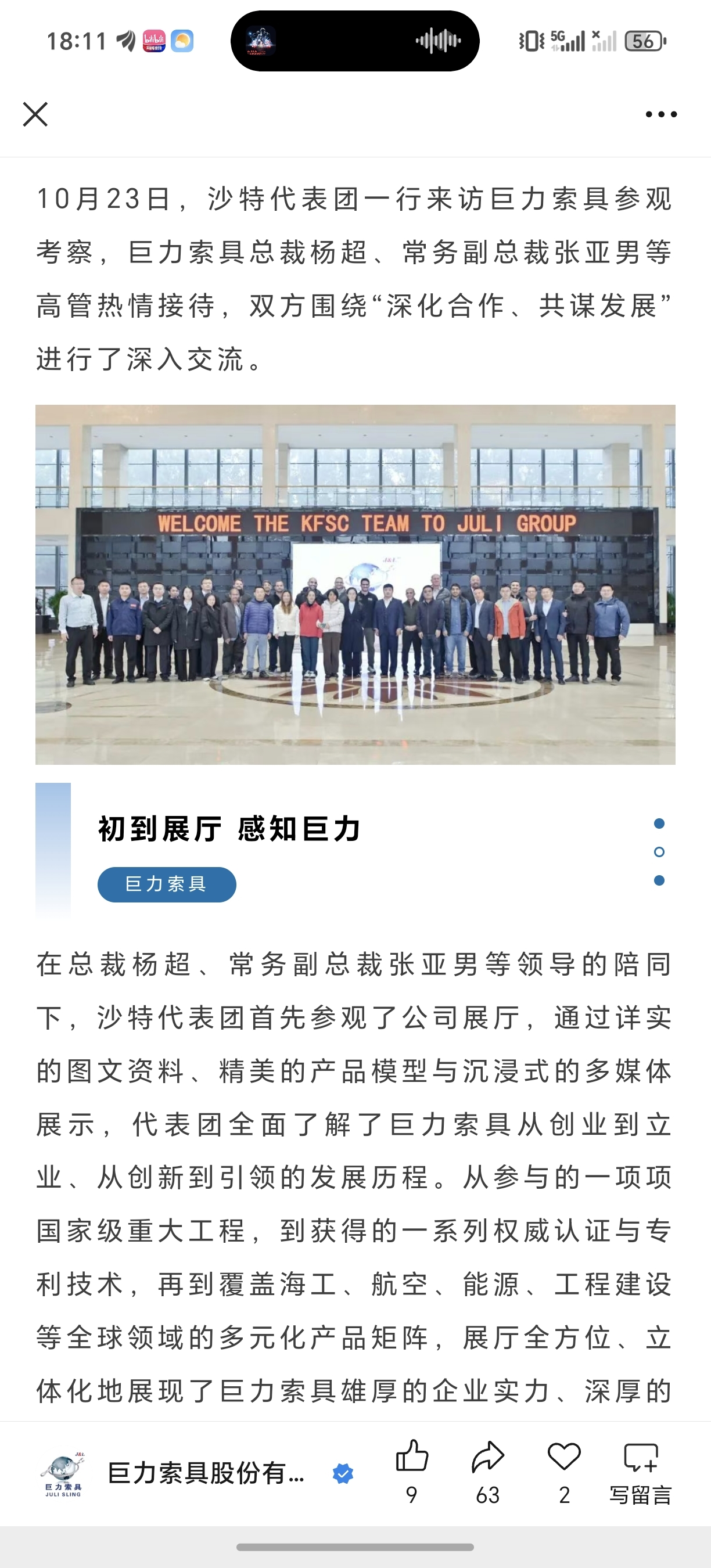 携手共进 锚定未来 沙特代表团到访巨力索具 共话合作新蓝图
