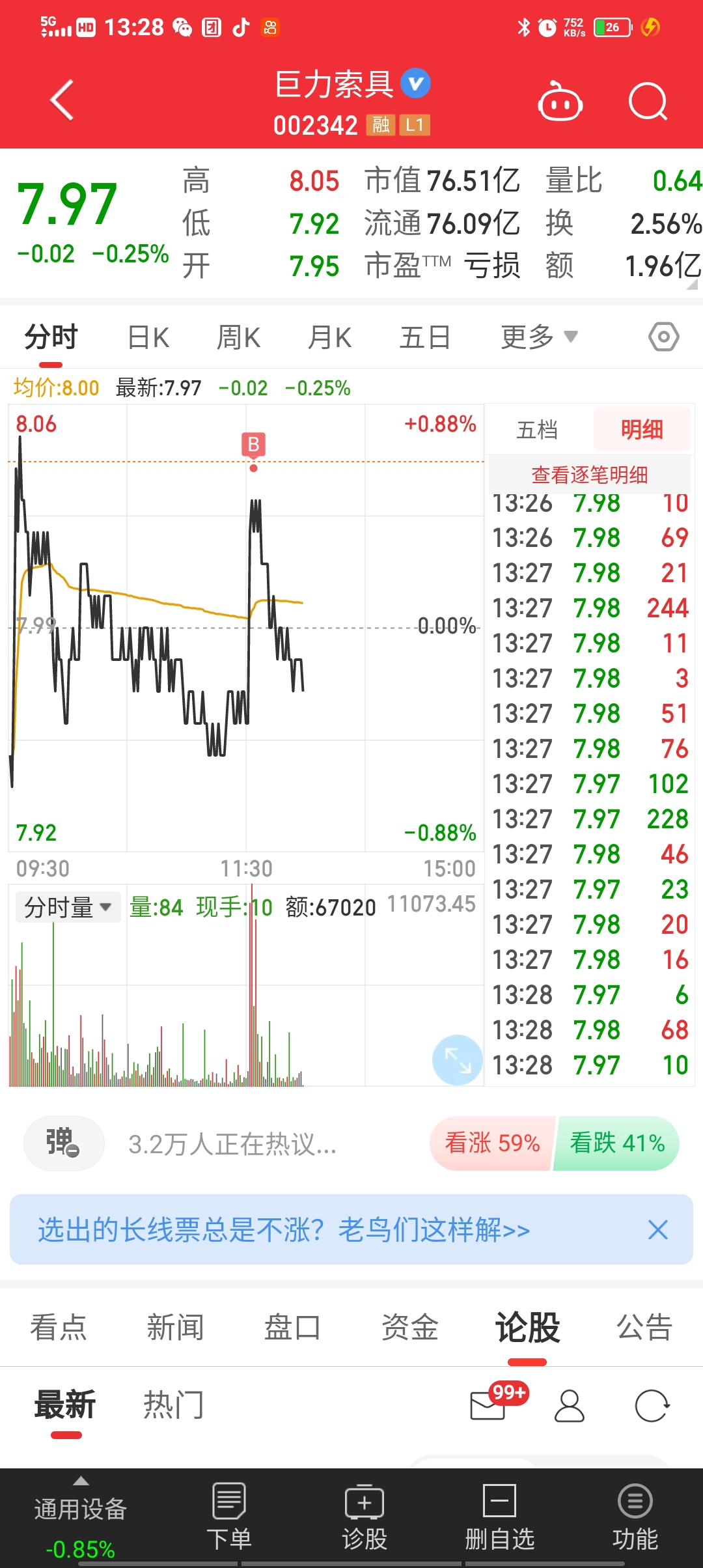 $巨力索具(SZ002342)$ ,昨天7.86最低点被我精准卖出。今天又是最高点。真的被监控了