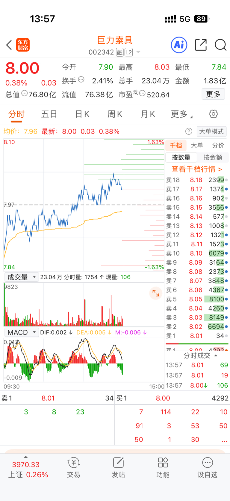 $巨力索具(SZ002342)$ 没戏,浪费时间