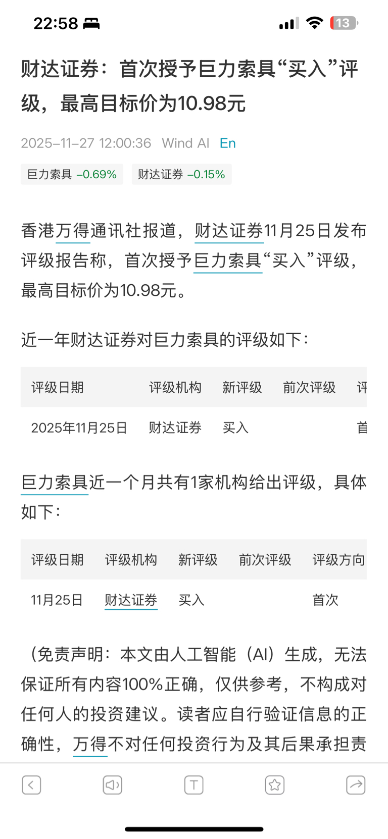 $巨力索具(SZ002342)$ 这么多年 .这是第一次看见有机构评级