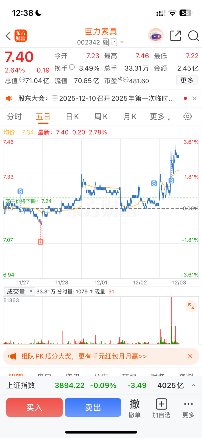 $巨力索具(SZ002342)$ 服了,剩个底啊仓,你就涨