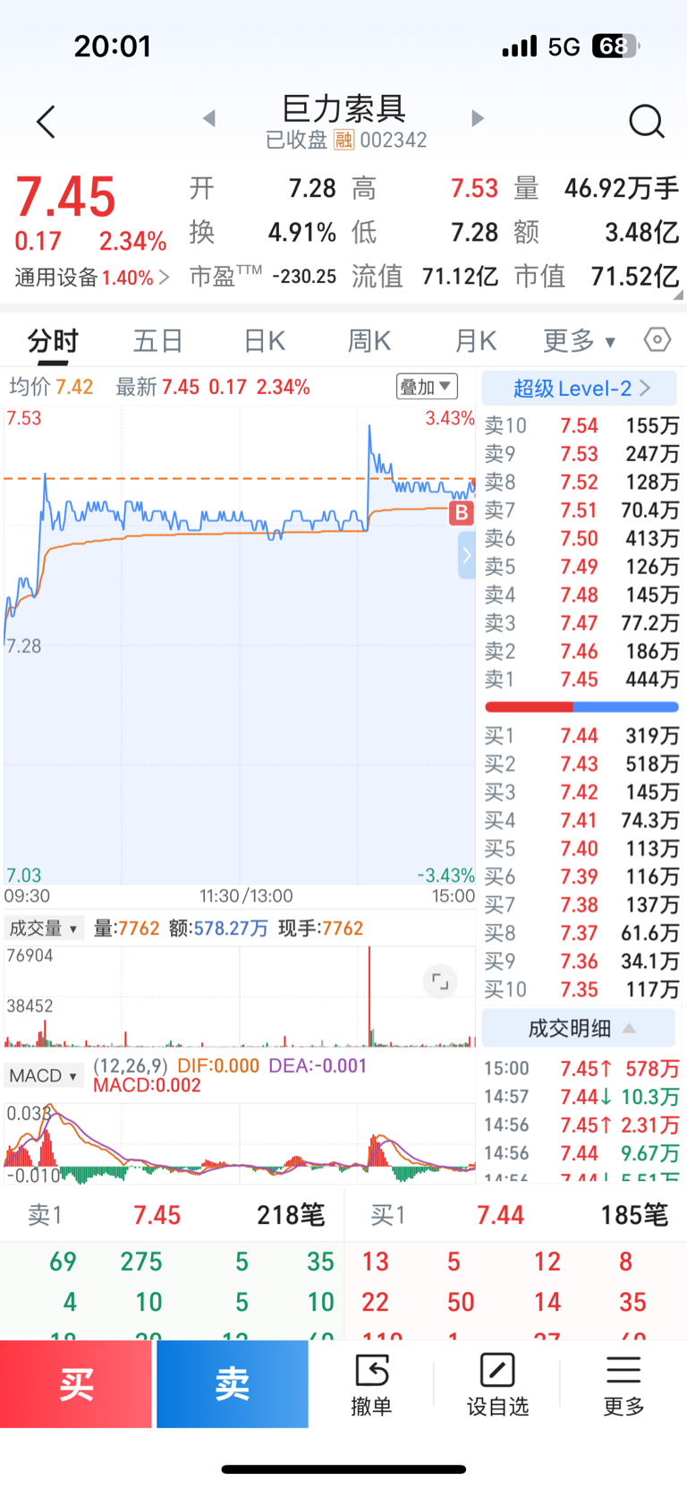 $巨力索具(SZ002342)$ 可以起飞了,姐姐竞价挤进去了