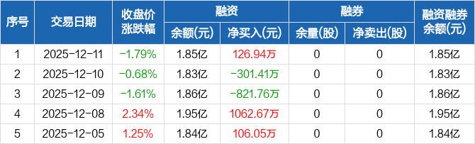 巨力索具:融资净买入126.94万元,融资余额1.85亿元(12-11)