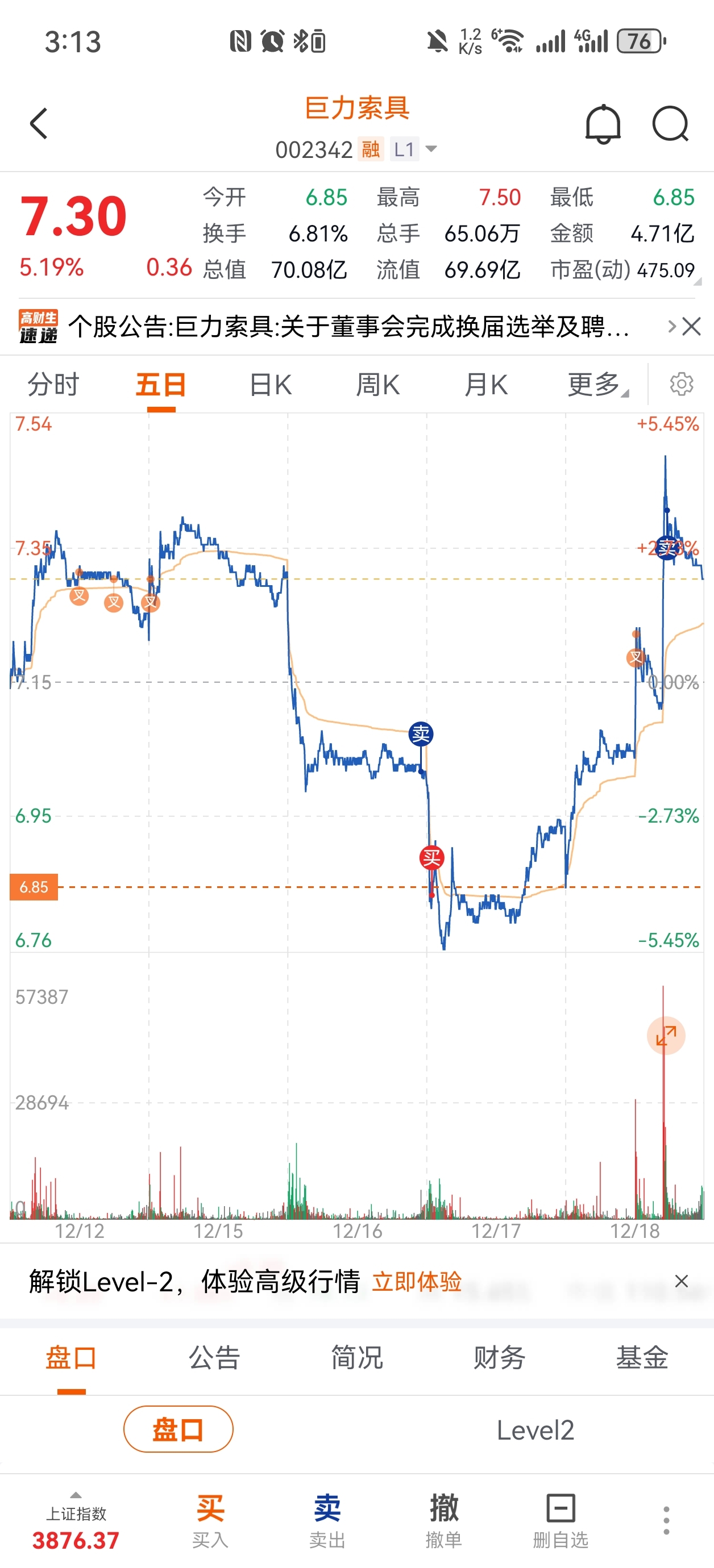 $巨力索具(SZ002342)$ 前天尾盘清仓,昨天早上低开杀入,今天直接解套再赚几个点跑路,明天低开四个点再接