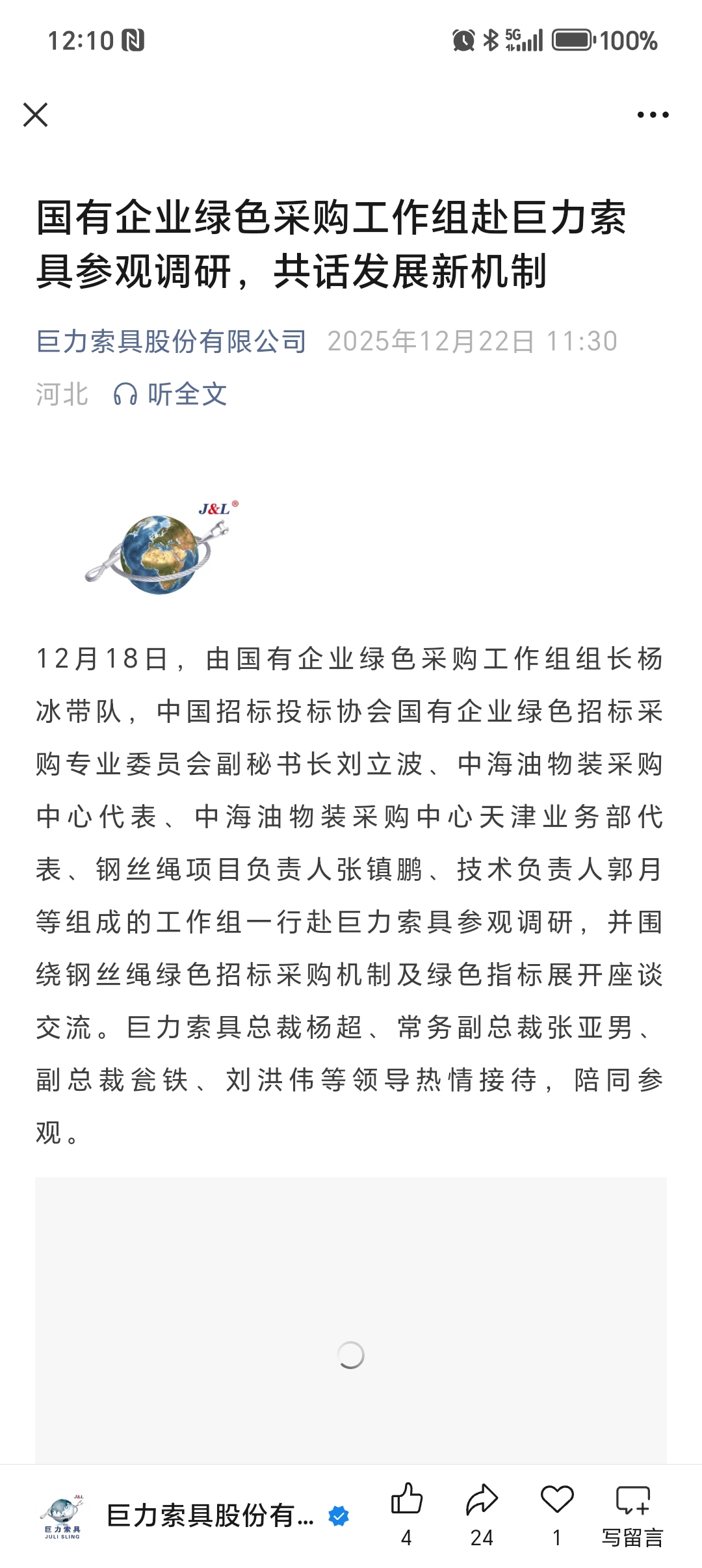 $巨力索具(SZ002342)$ 村委采购组都去了,你们怕啥,重大利好