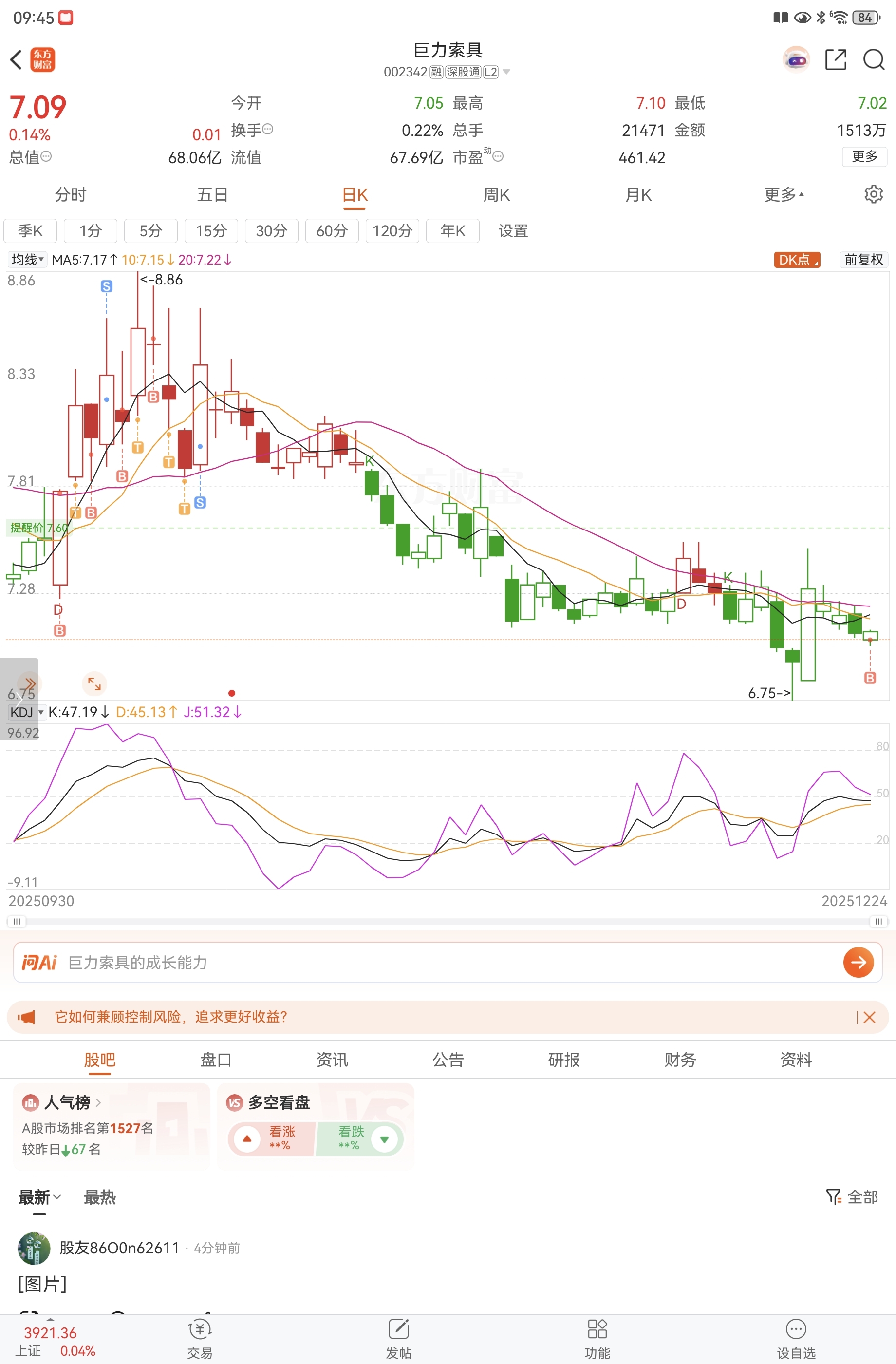 $巨力索具(SZ002342)$ 历时两个月,我又杀回来了