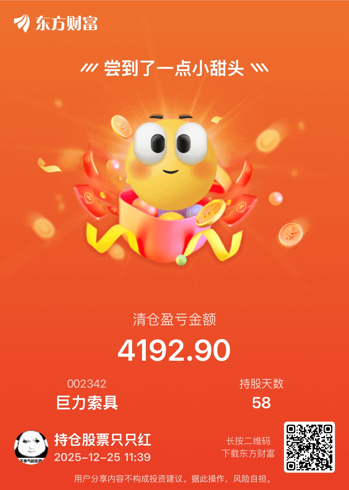 $巨力索具(SZ002342)$ 股性太弱了,下午不会复刻昨天的行情了,昨天7.14买入,刚才7.60全卖了,终于把这股做到不亏损
