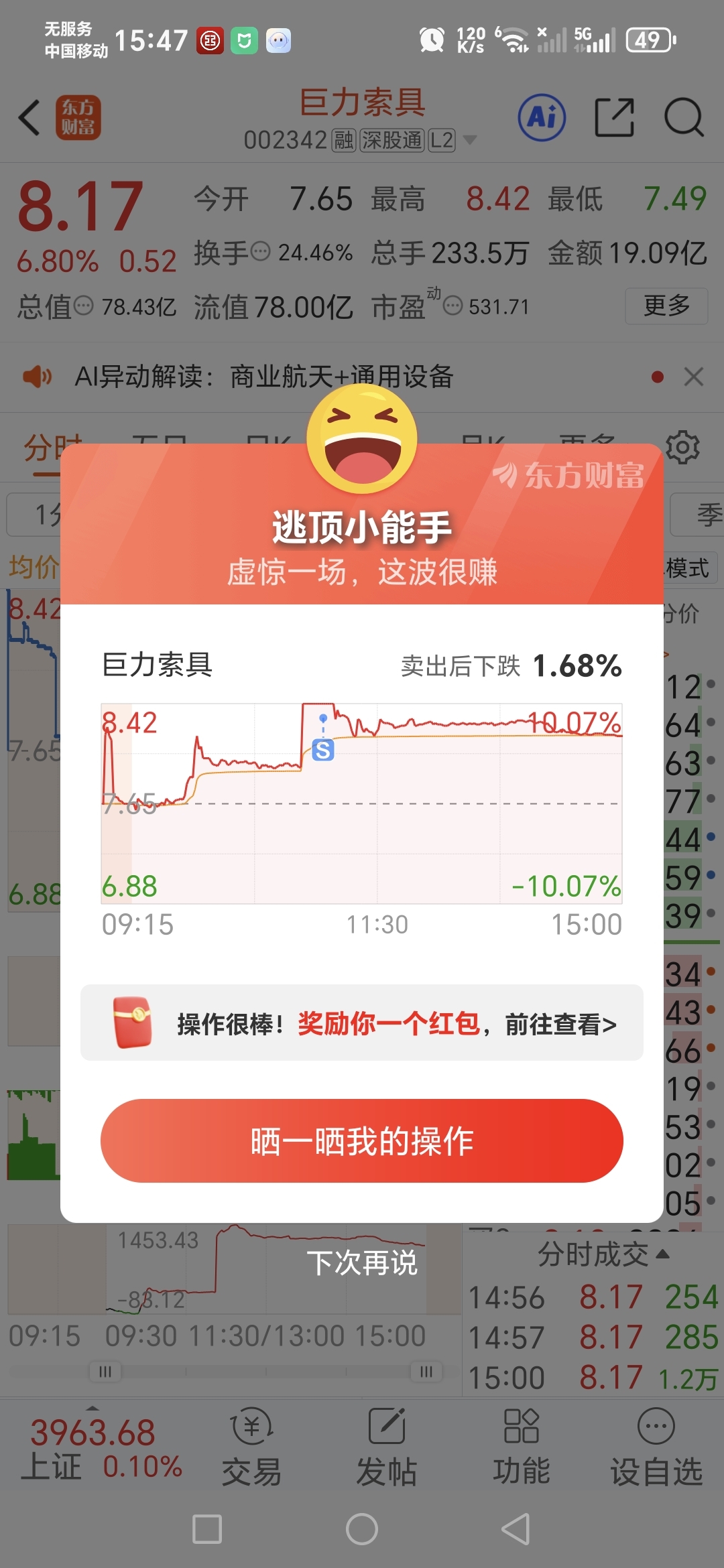 $巨力索具(SZ002342)$ 空中荡秋千的感觉,太恶心了。。。