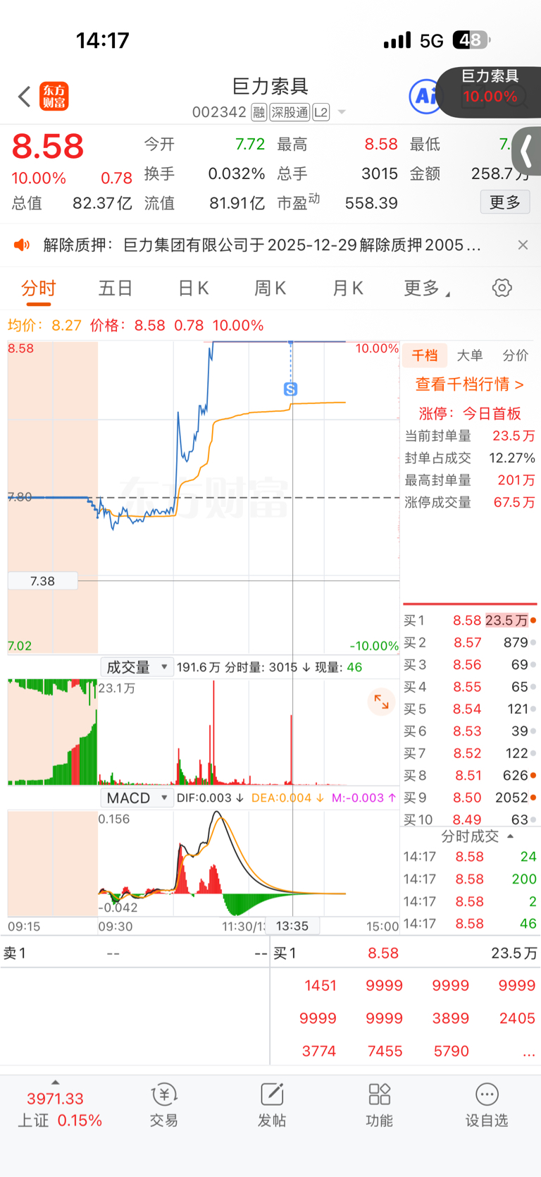 $巨力索具(SZ002342)$ 还我筹码,狗主力骗我出去