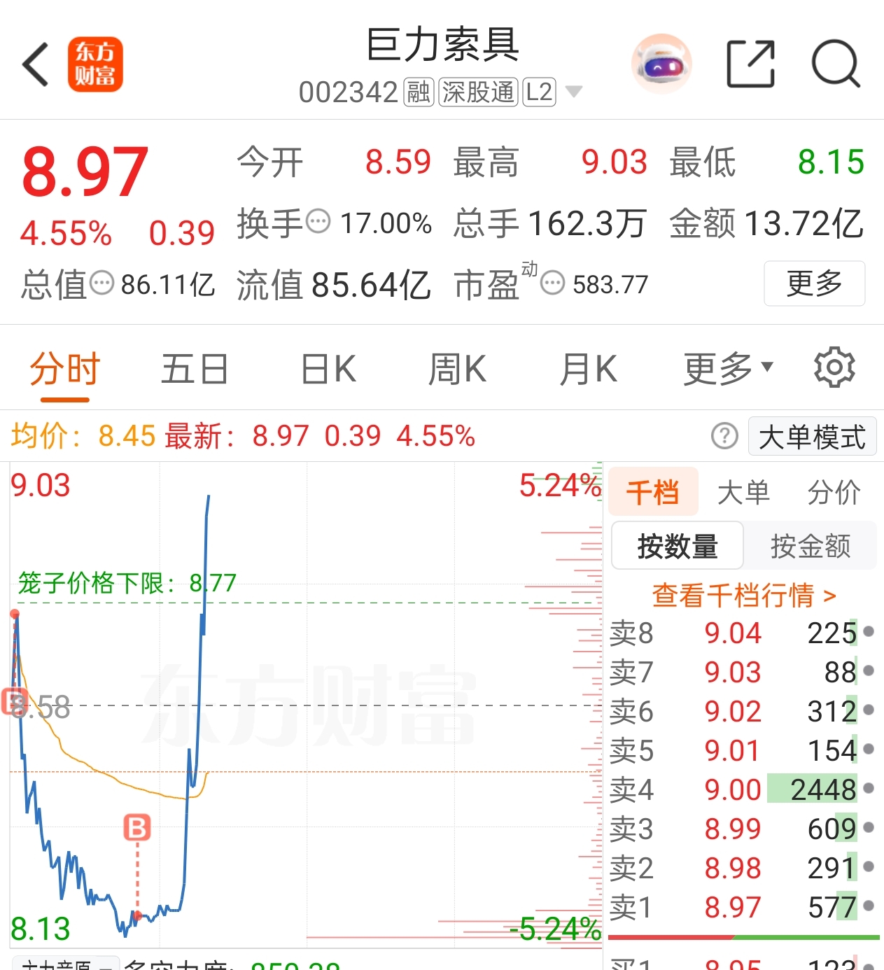 $巨力索具(SZ002342)$ 昨天涨停板上进去5个亿,今天开盘一小时也没流出多少,我判断大佬在格局,所以就算被套也果断加仓了