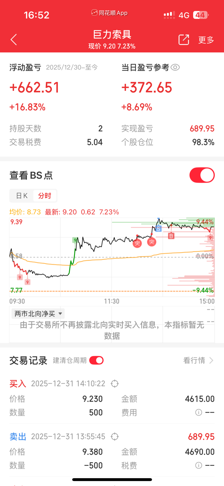 $巨力索具(SZ002342)$ 不知道下周一情况如何了9.38最高点卖 9.22接回来了