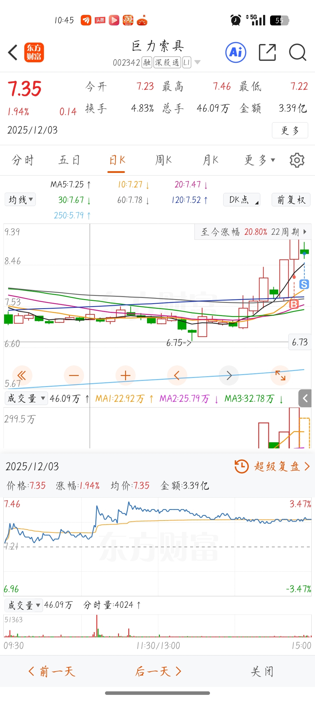 $巨力索具(SZ002342)$ 走了吐了5个点