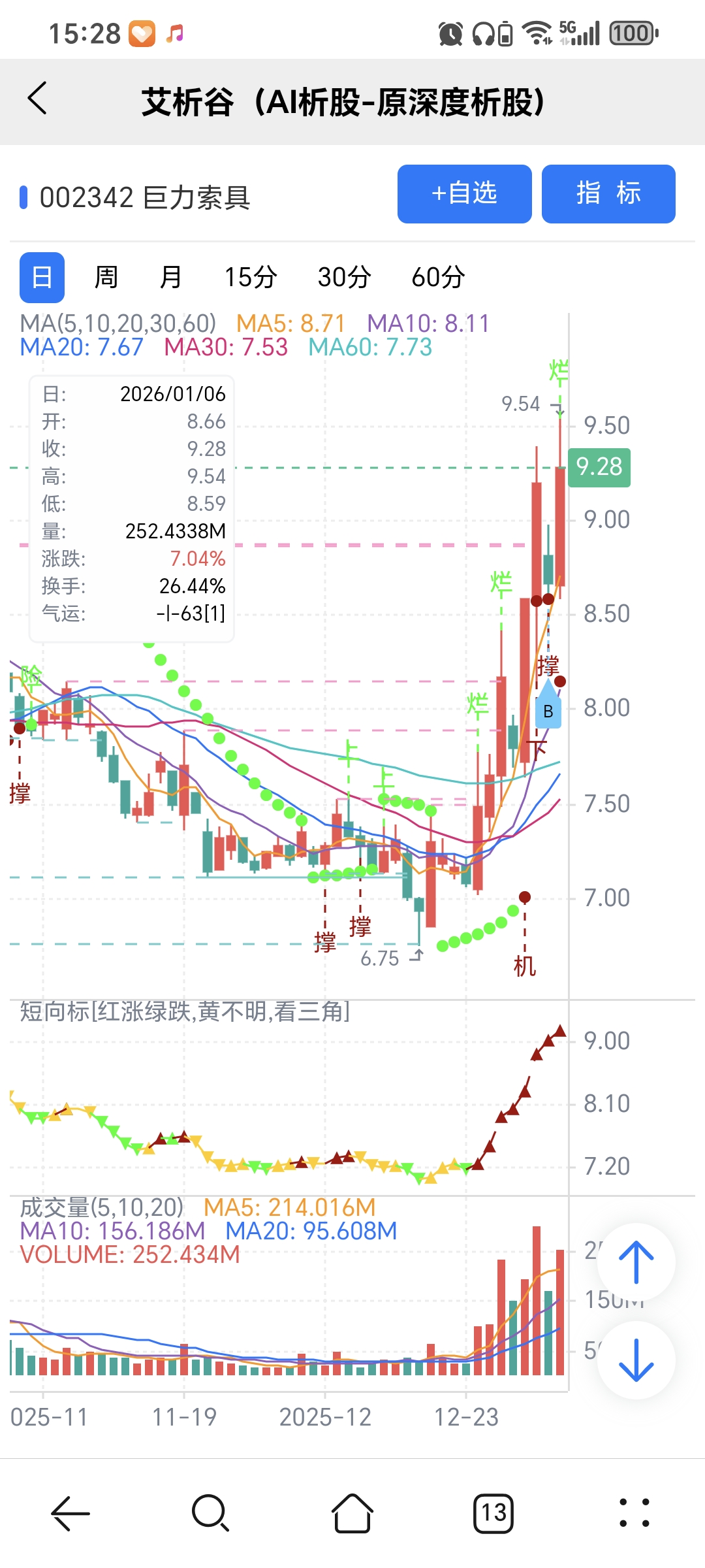 红绿小圆点是艾析谷的量化指标-艾短波,是趋势跟踪+突破类的量化指标,完全免费。