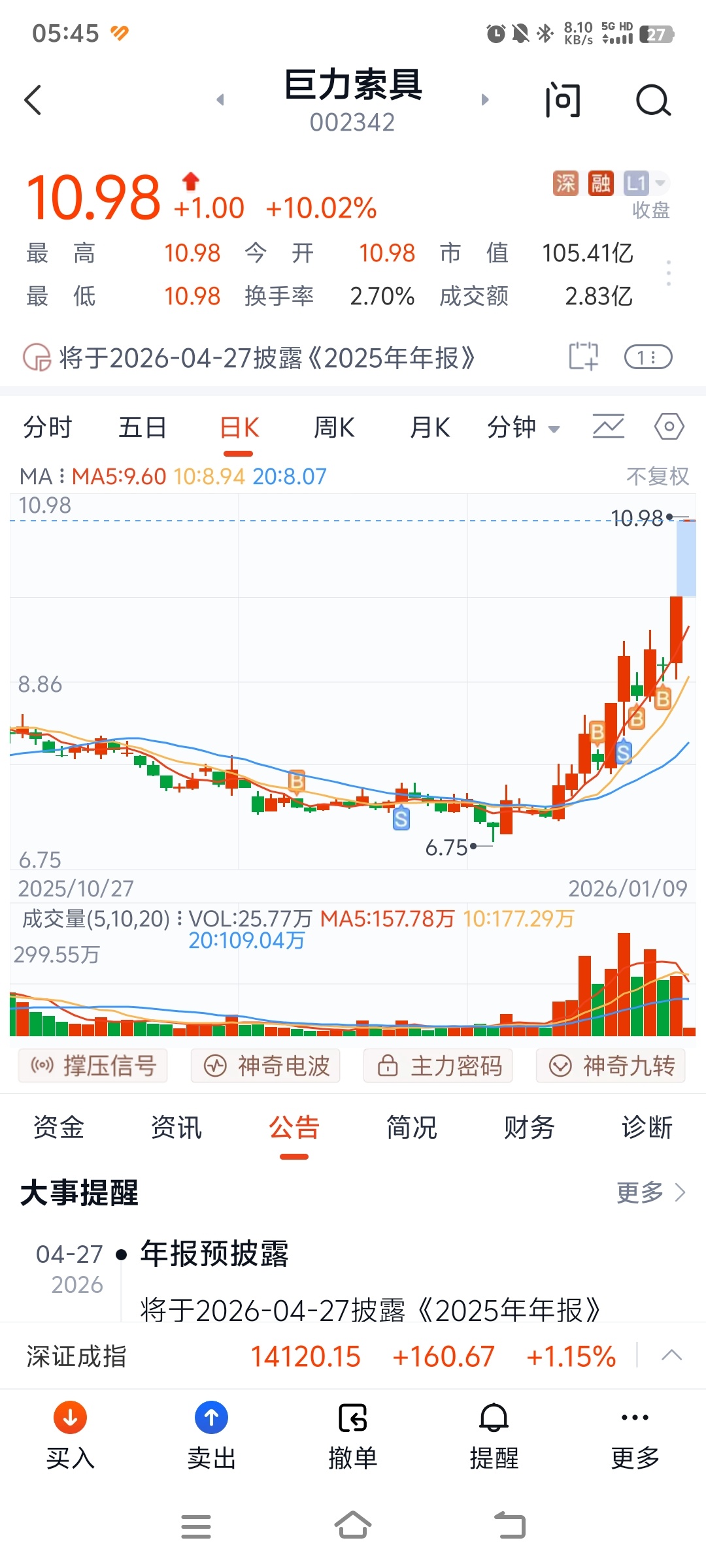$巨力索具(SZ002342)$ 小试牛刀