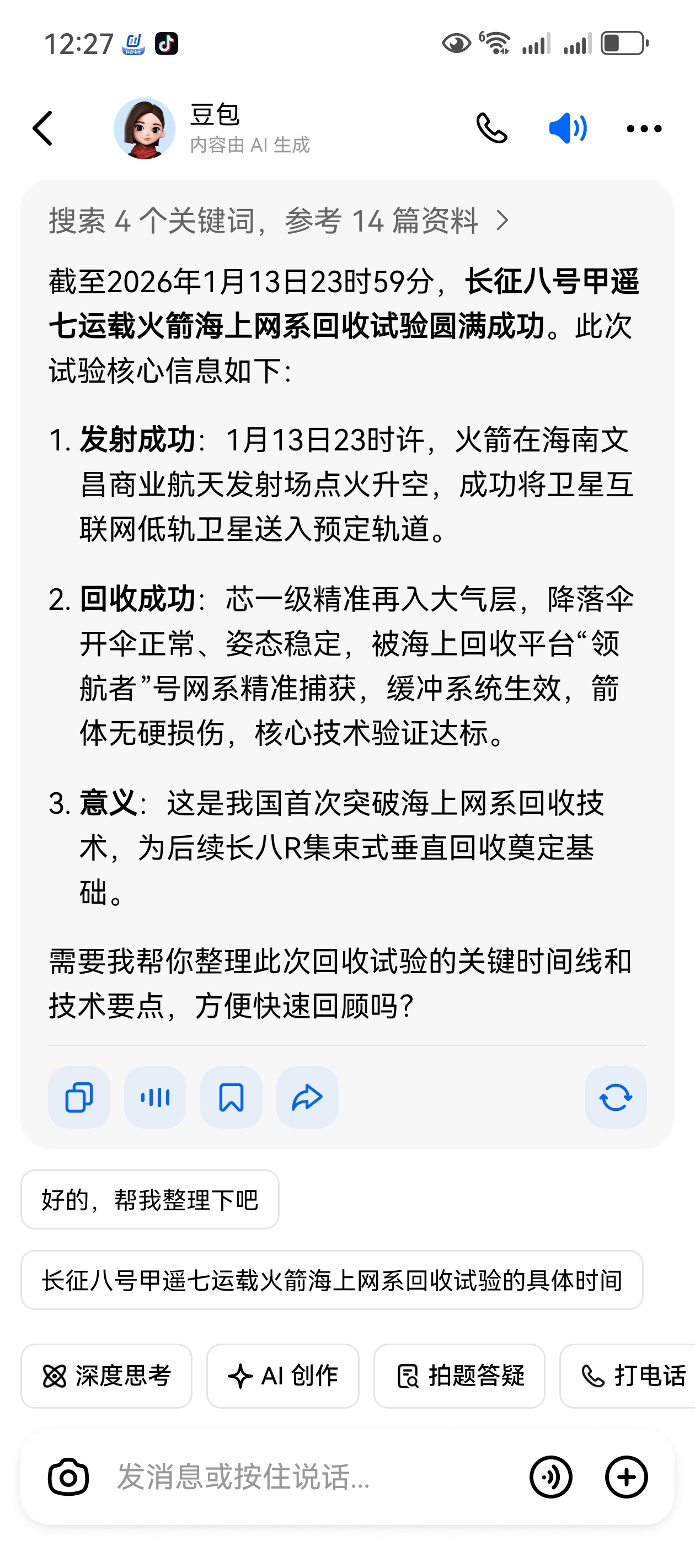好消息回收圆满成功。明天有希望了