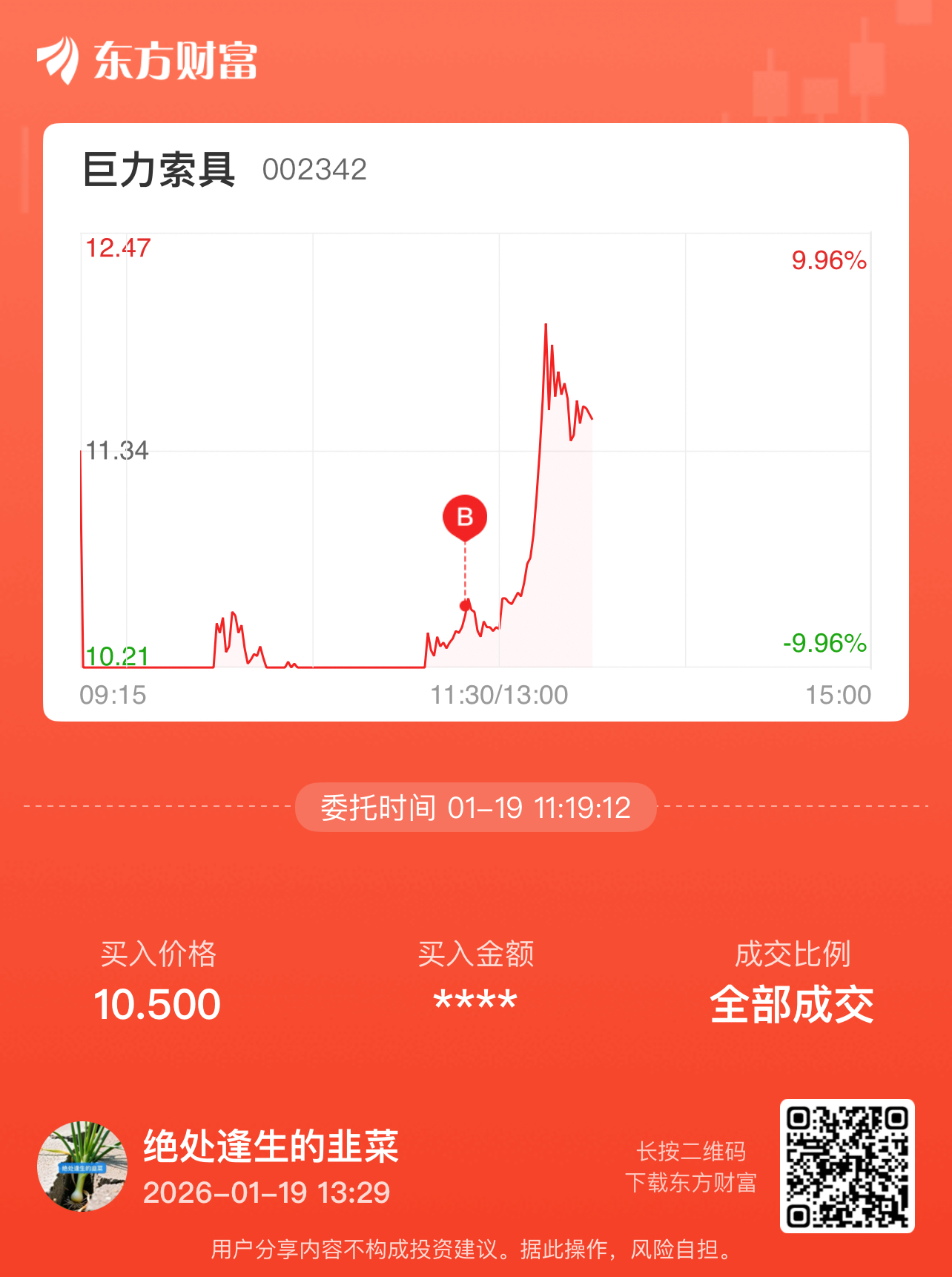 温馨提示: 1.根据《证券法》规定,禁止编造、传播虚假信息或者误导性信息,扰乱证券市场;2.用户在本社区发表的所有资料、言论等仅代表个人观点,与本网站立场无关,不对您构成任何投资建议。用户应基于自己的独立判断,自行决定证券投资并承担相应风险。《东方财富社区管理规定》