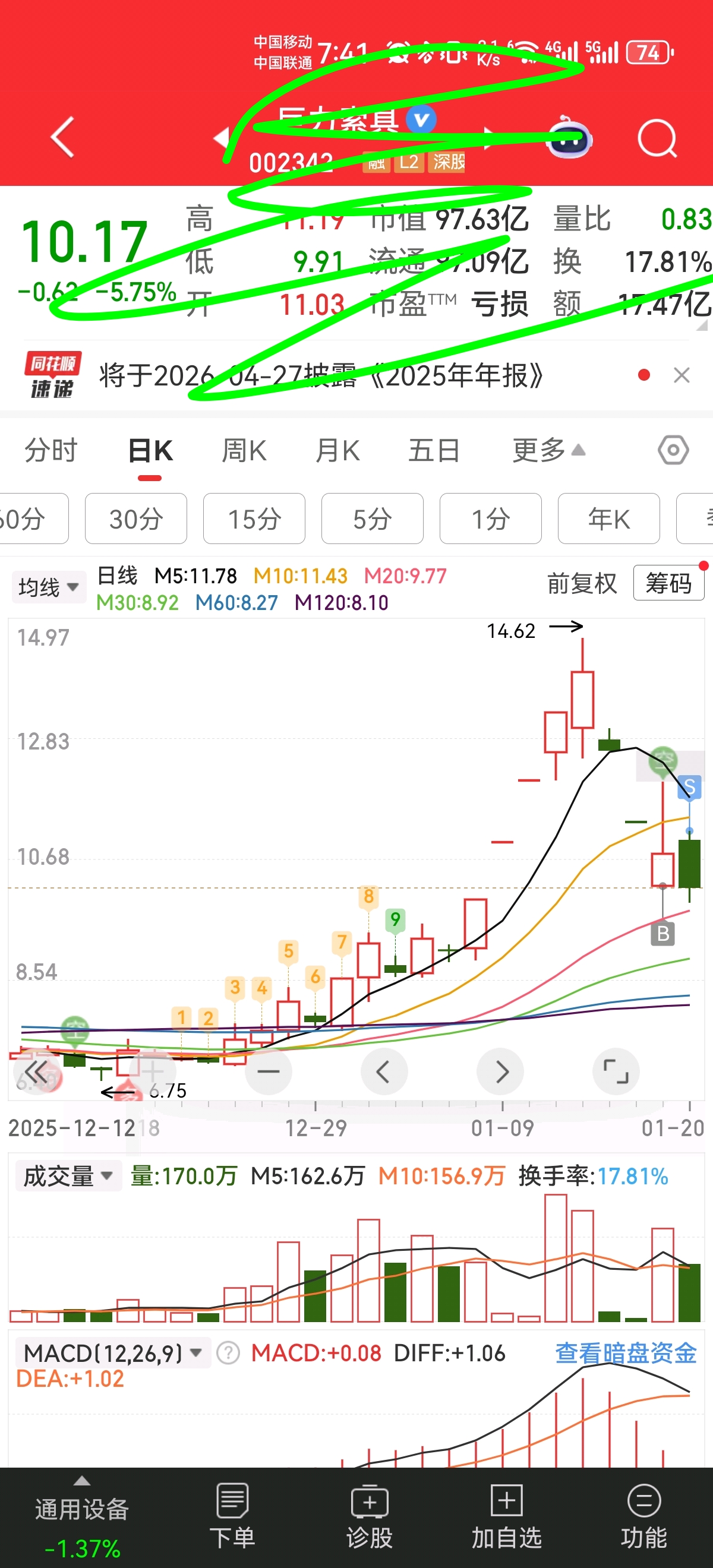 $巨力索具(SZ002342)$ 我看你们也是人才,这样的一秒高开居然不走