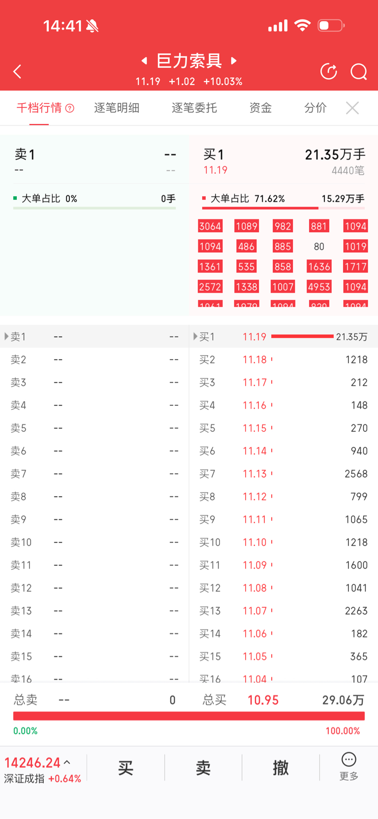 $巨力索具(SZ002342)$ 封单这次全是大单和之前不一样了,明天应该还有溢价
