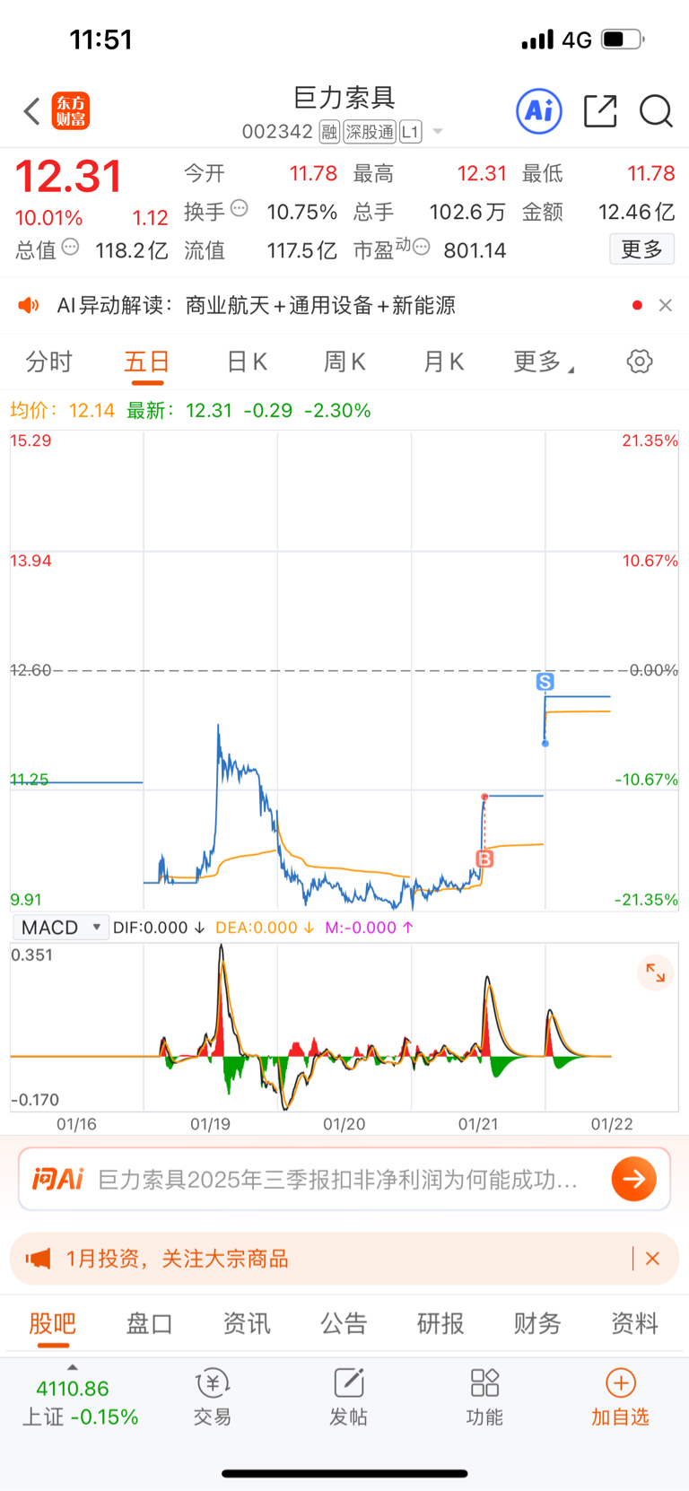 $巨力索具(SZ002342)$ 卖飞了,让我上车