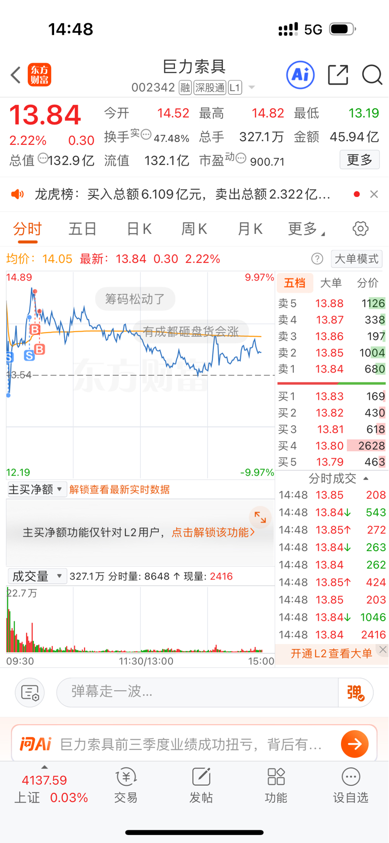 $巨力索具(SZ002342)$ 我就是个SB