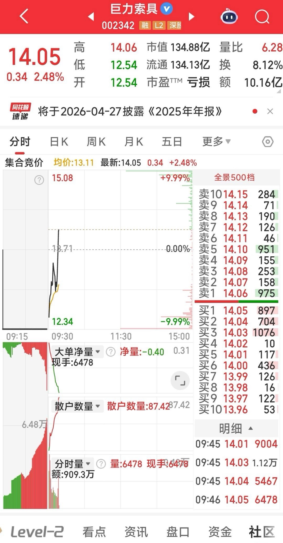 苏州高新,7.58元可加仓建仓达安基因7.51元建仓等板巨力索具,14.05元择