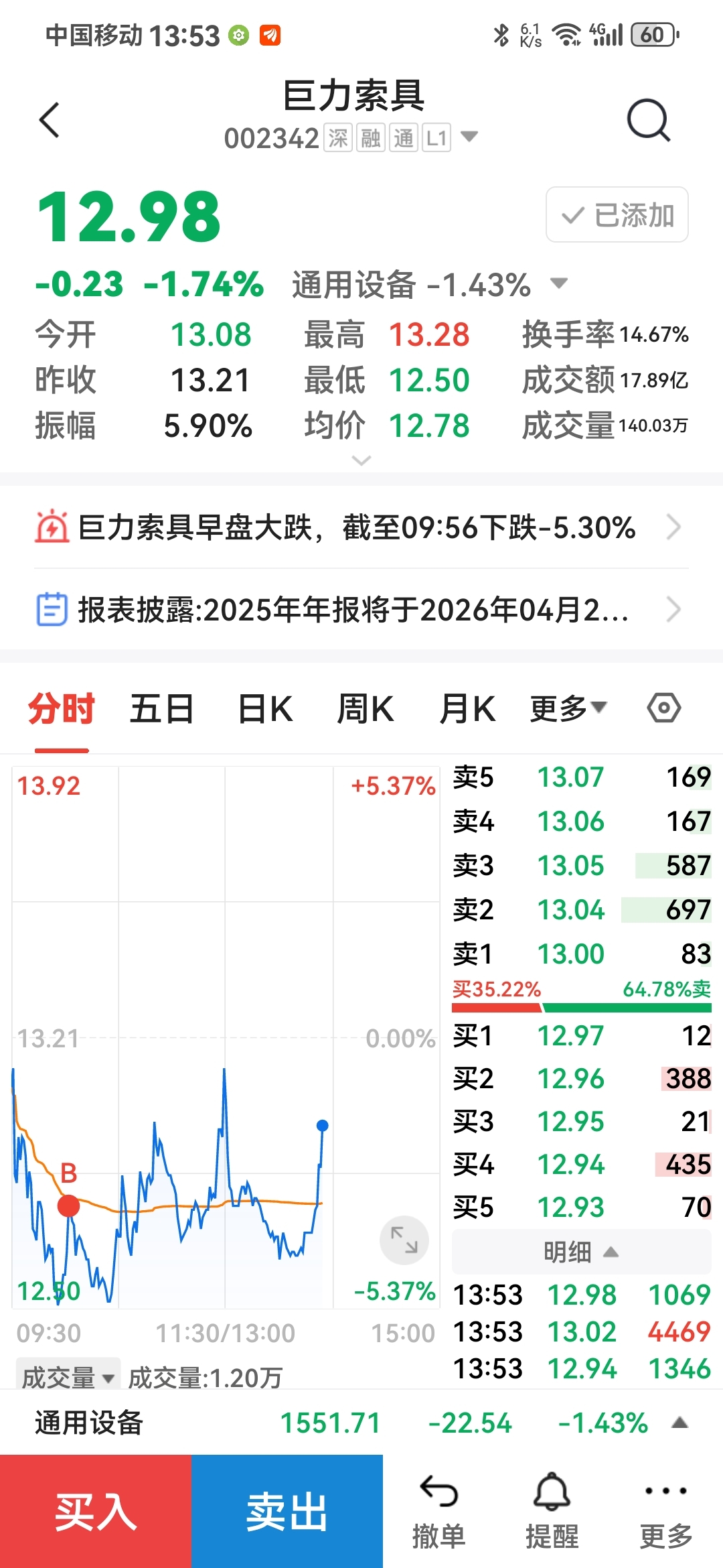 $巨力索具(SZ002342)$ 今天抛掉了平潭,入了五成仓,明天一定要争气点了!