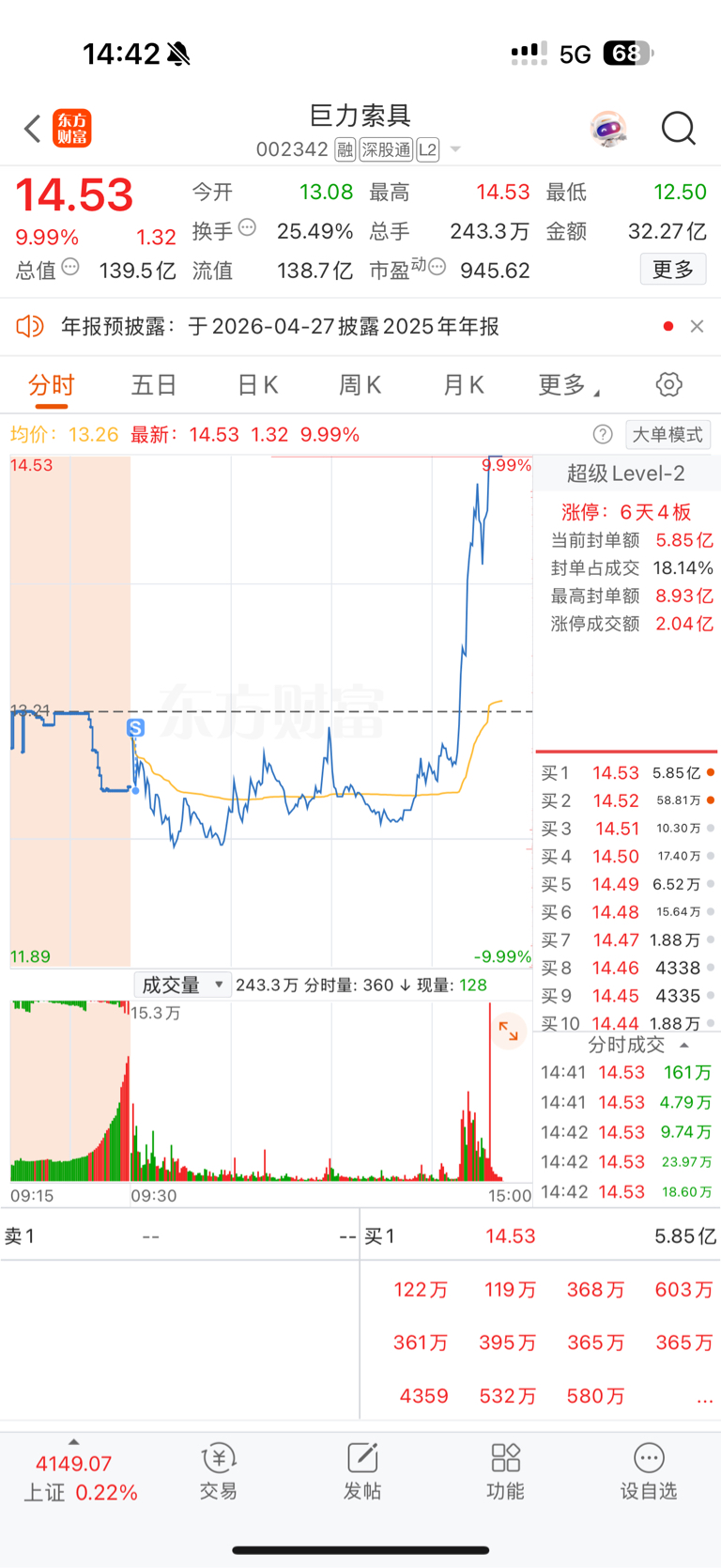 $巨力索具(SZ002342)$ 难受死了昨天格局住了,今天有色避险涨停潮实在是格局不了,午后反手就拉个涨停
